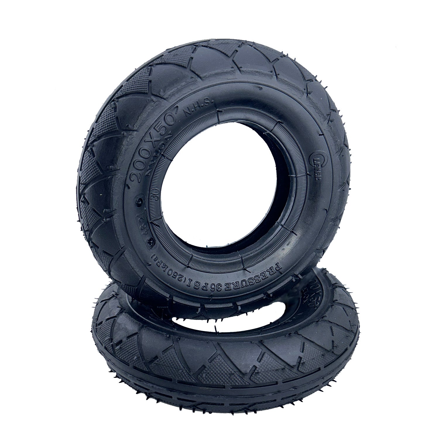 This high-quality 200x50 pneumatic tire from Qind fits many different makes and models of recreational scooters available on the market today. 200x50 tires are also known as 8"x2" tires, depending on the manufacturer.