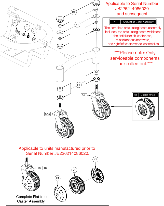 ARTICULATING BEAM,ASSY,CURVED,W/CASTER WHEELS,SILVER RIM/CHARCOALTIRE,J6/Q610 (MEC140101)