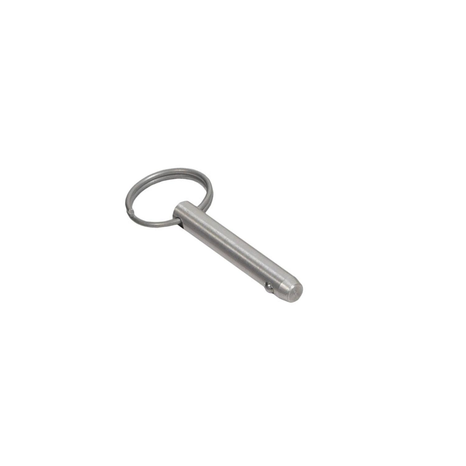 The 1-1/2" quick release pin is an essential bit of hardware if you have an accessory tube behind your scooter or power chairs seat. It is also found on some foot riggings, seat frames, and docking devices. One application that gets a lot of use is securing a cargo trunk to the 1" tube. Made of tough and durable 18-8 stainless steel, these 1-1/2" quick release pins feature a pull-ring and a detent ball.