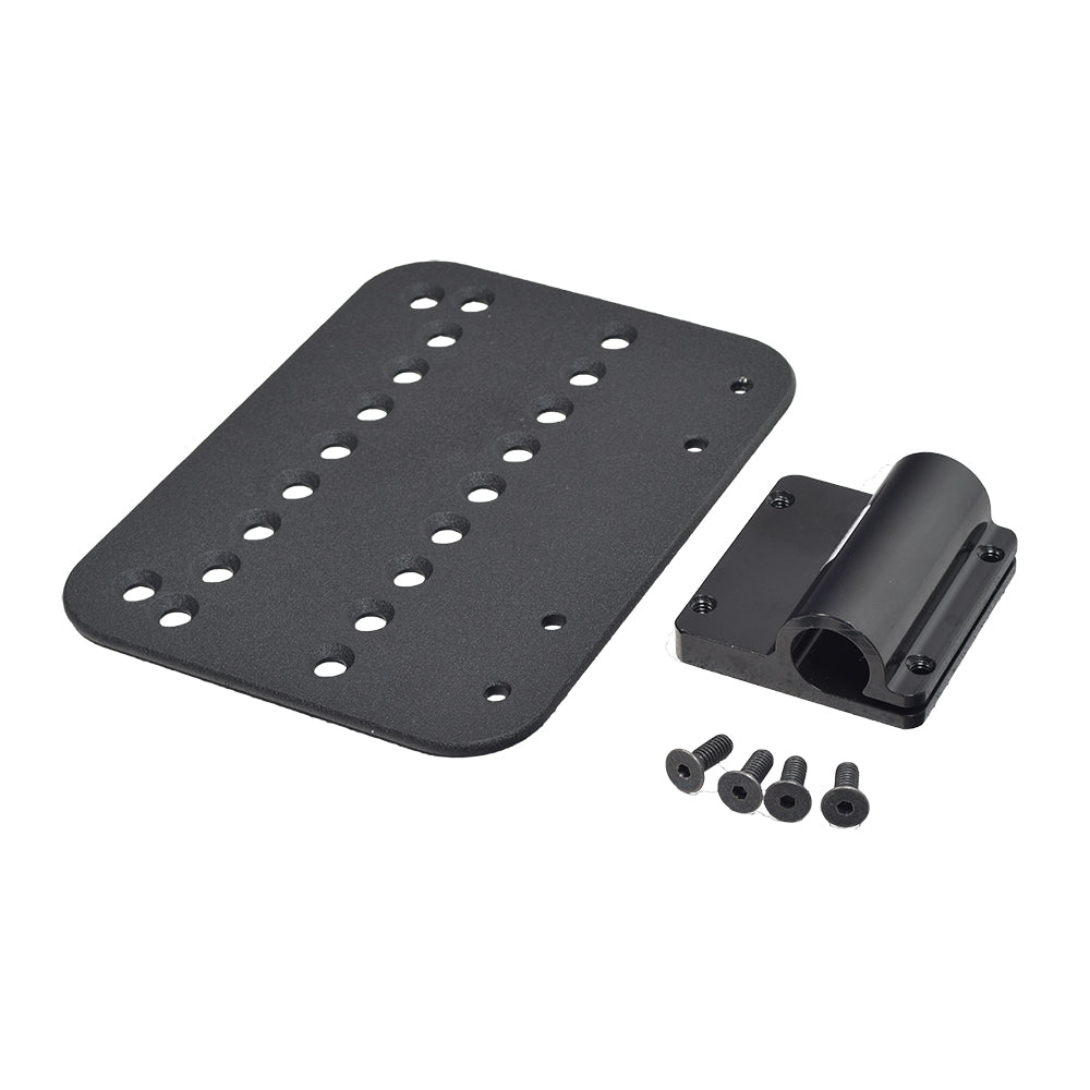 The 6"x8" angle-adjustable footrest for Quantum power chairs includes the footrest plate, offset mounting block, and fastening hardware.