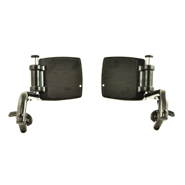 Pair of swing away leg rest assemblies for Synergy seat with Quantum foot riggings. This assembly includes: 14" - 17" extension, with 7.25"x6" reinforced footplate.