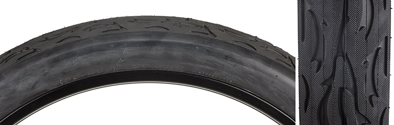 Replace your old 26"x3" bike tire with this great 26"x3" Black Cruiser Flame Bicycle Tire from Sunlite. Sunlite's tires are some of the most popular replacement bike parts on the market, and they are available in about every rim size in current use. Let Monster Scooter Parts be your source for the latest bicycle tires from Sunlite with this 26"x3" Black Cruiser Flame Bicycle Tire.