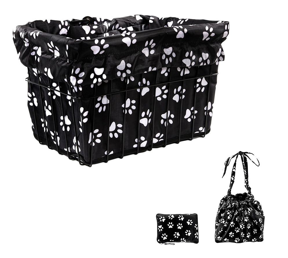 If you are ready to dress up your bike or scooter basket with what may be the most stylishly fun accessory around, you will want a convenient and great looking basket liner & carrying sack with drawstring. When installed in your basket, these liners measure a generous 14" wide x 9" high x 9" deep; and that means a full 1,134 square inches of carrying space! These reversible bike and scooter basket liners convert into closable and fashionable drawstring carrying bags that easily fit all standard wire and wicker baskets. When not in use, the nylon rip-stop material folds up into a conveniently small 9" x 6" zippered pouch.