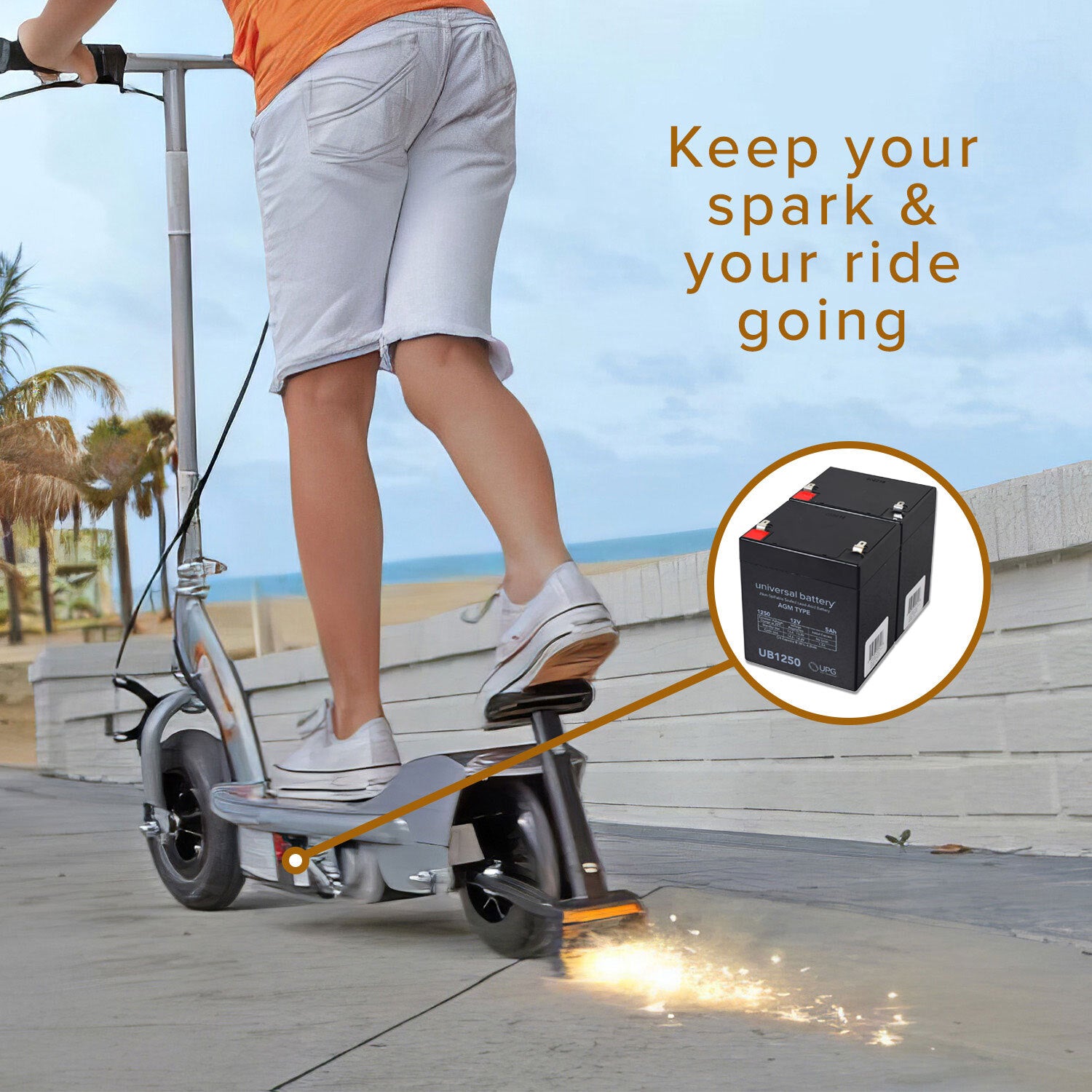 The Razor eSpark is a fun little scooter, and our OEM equivalent 24 volt battery pack for the Razor eSpark makes it fun to save money. You can order two of our new 12 Volt 5 Ah batteries for one low price, complete with the wiring harness. You will get the best bang for your buck when you order your Razor eSpark battery pack from Monster Scooter Parts.