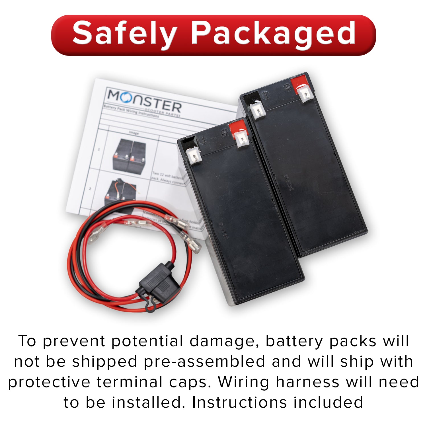 • Safely Packaged - To prevent damage, battery packs will not be shipped pre-assembled and will ship with protective terminal caps. Wiring harness will need to be installed. Instructions included