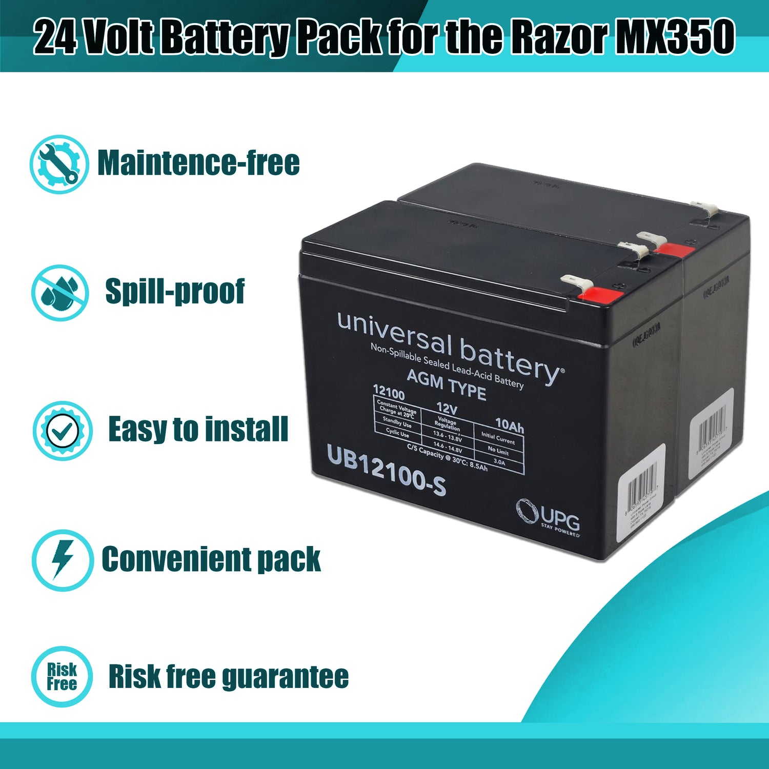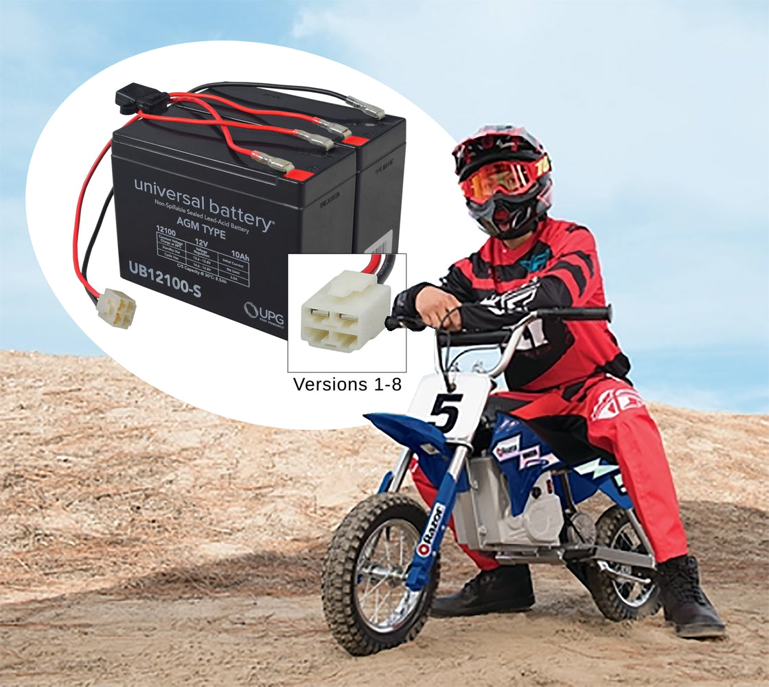The Razor MX350 Dirt Rocket was produced in a number of versions, the first eight versions using a 10 Ah battery system. Later versions of the MX350 (version 9 and after) use 7Ah or 9Ah batteries. Our OEM equivalent 24 volt battery pack for the Razor MX350 (versions 1-8 only) is a great value in replacement Razor batteries and will help you keep that dirt bike running without hitting you too hard in the wallet.