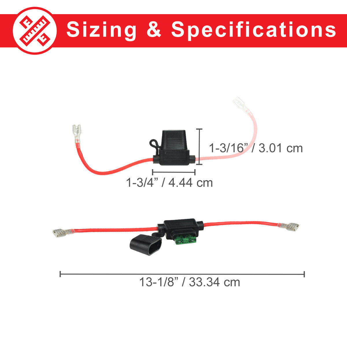 This fuse holer with wires Includes a 30 amp ATM (mini ATO) fuse.