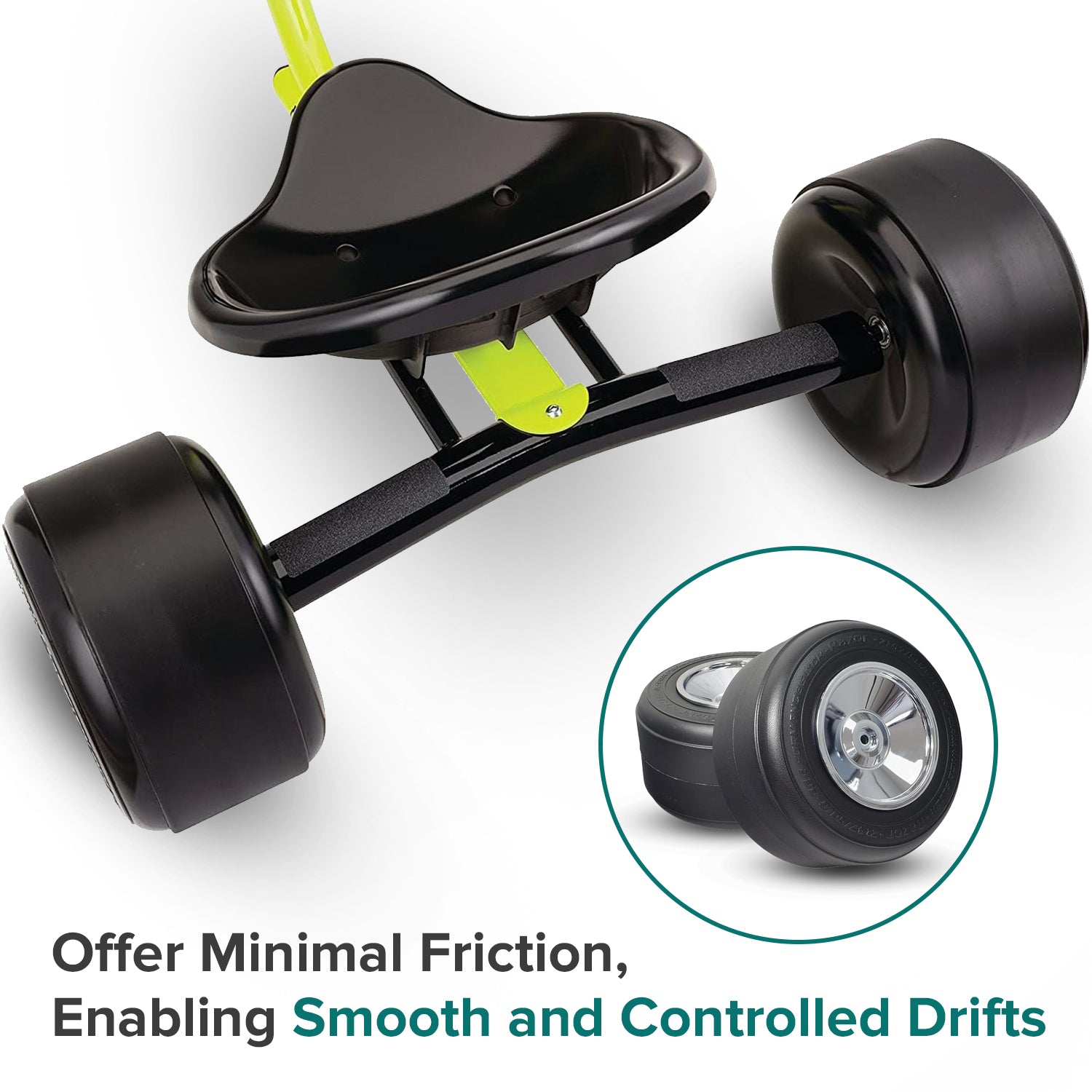 - Slick (treadless) 10" rear wheels