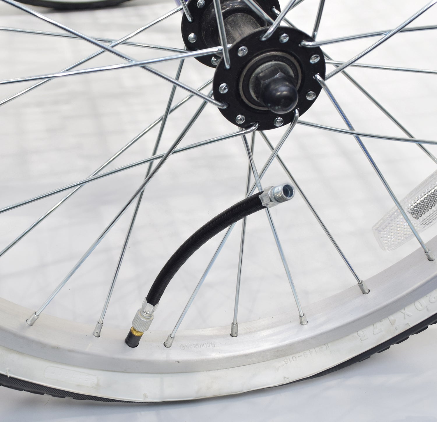 This extender may be used at almost any angle, well away from the wheel hub. Just thread it onto the Schrader valve, fill, and remove. The extender is small enough to fit into just about any bag or pocket, yet large enough to be easily found. As handy and useful as it is, this totally convenient tire tool should have its place in every cyclist and scooterist's toolbox.