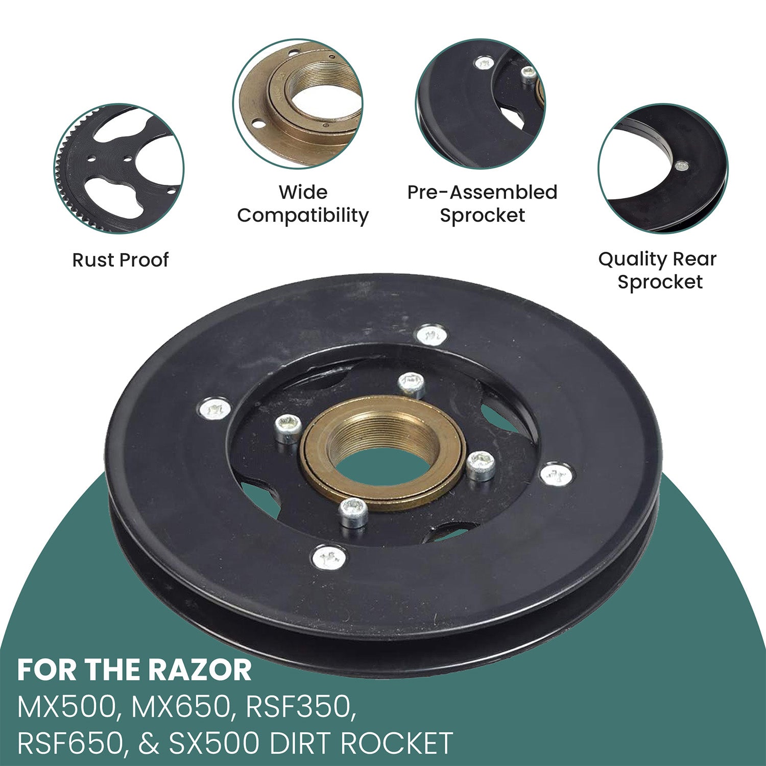 Rear Sprocket, Freewheel, & Chain Plate Guides for the Razor MX500, MX650, RSF350, & SX500 Dirt Rocket