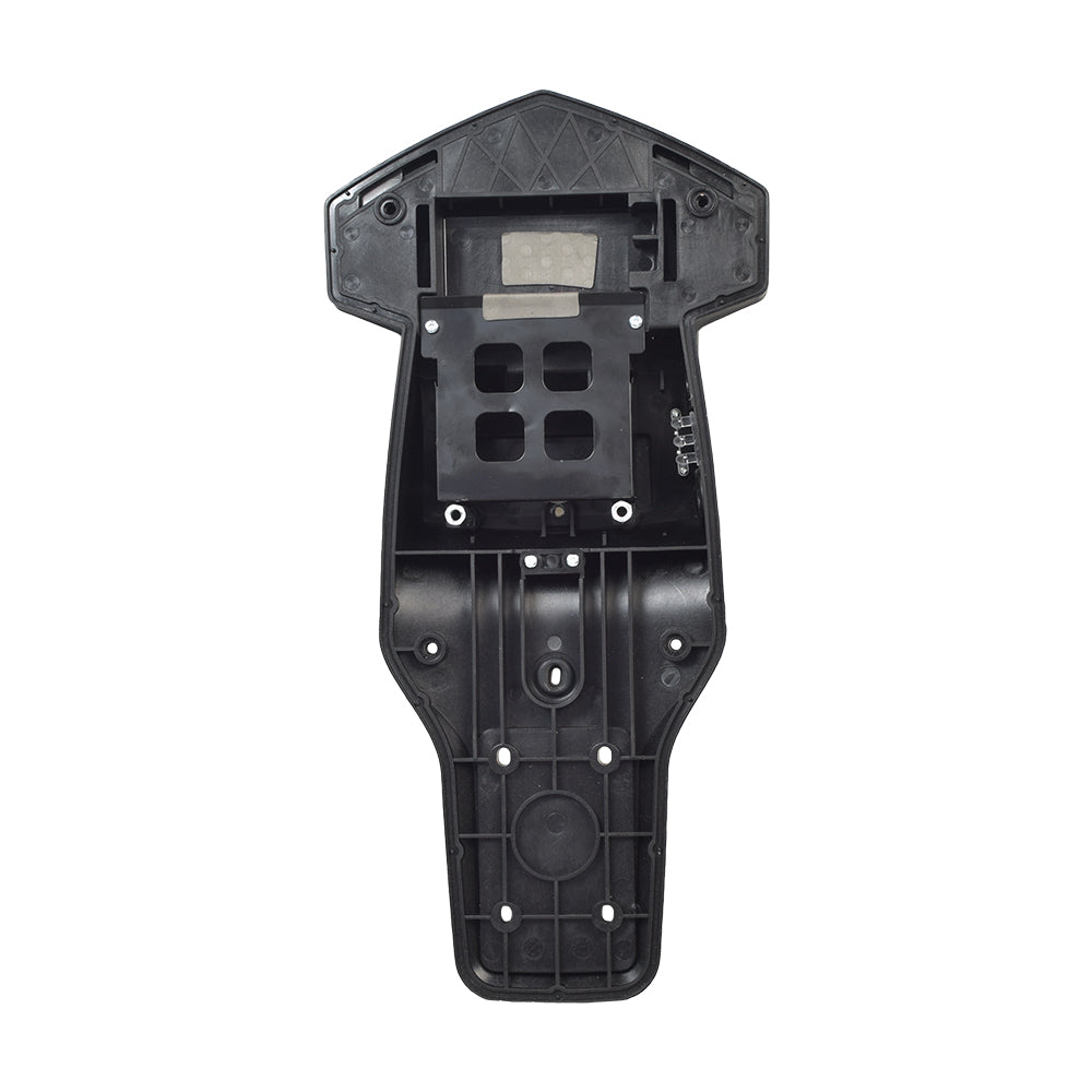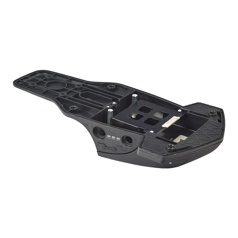 The battery and electronics tray for the RazorX Cruiser electric skateboard is a 2-part plastic box that holds the Lithium battery, the motherboard, On/Off switch, and battery charger port. This 14-1/2" long black plastic panel assembly simply unscrews from the bottom of the tray and lifts off to expose the vital internal parts.