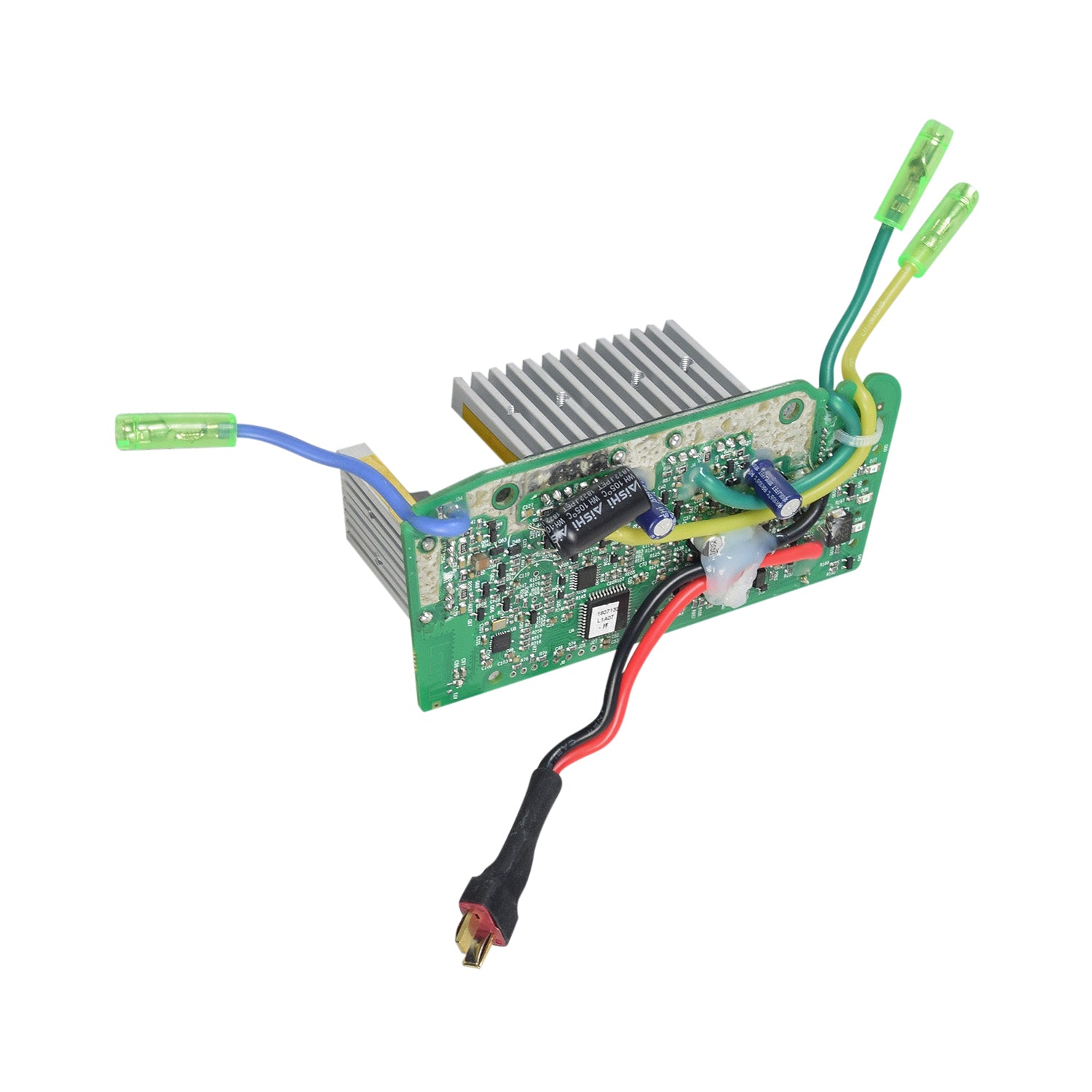 The motherboard (PCB) for RazorX electric skateboards is the electronic control module of the model and receives the remote hand control signal. The on/off and forward/reverse control signals are transferred to the motor and off you go. The motherboard comes with a pair of crimp-on butt connectors and a 2-pin push-on connector.