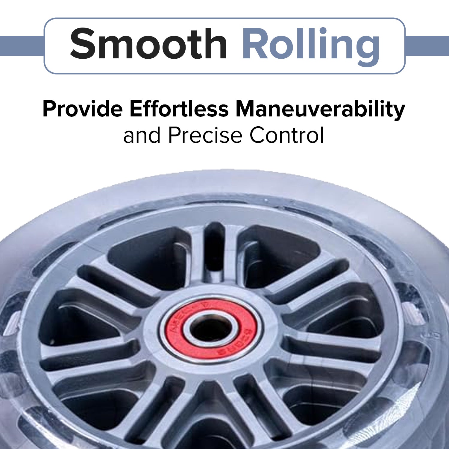Each kick scooter wheel in this assembly comes with a set of 608ZZ or 608-2RS ABEC-5 bearings installed. These wheels measure 125 mm in outer diameter.