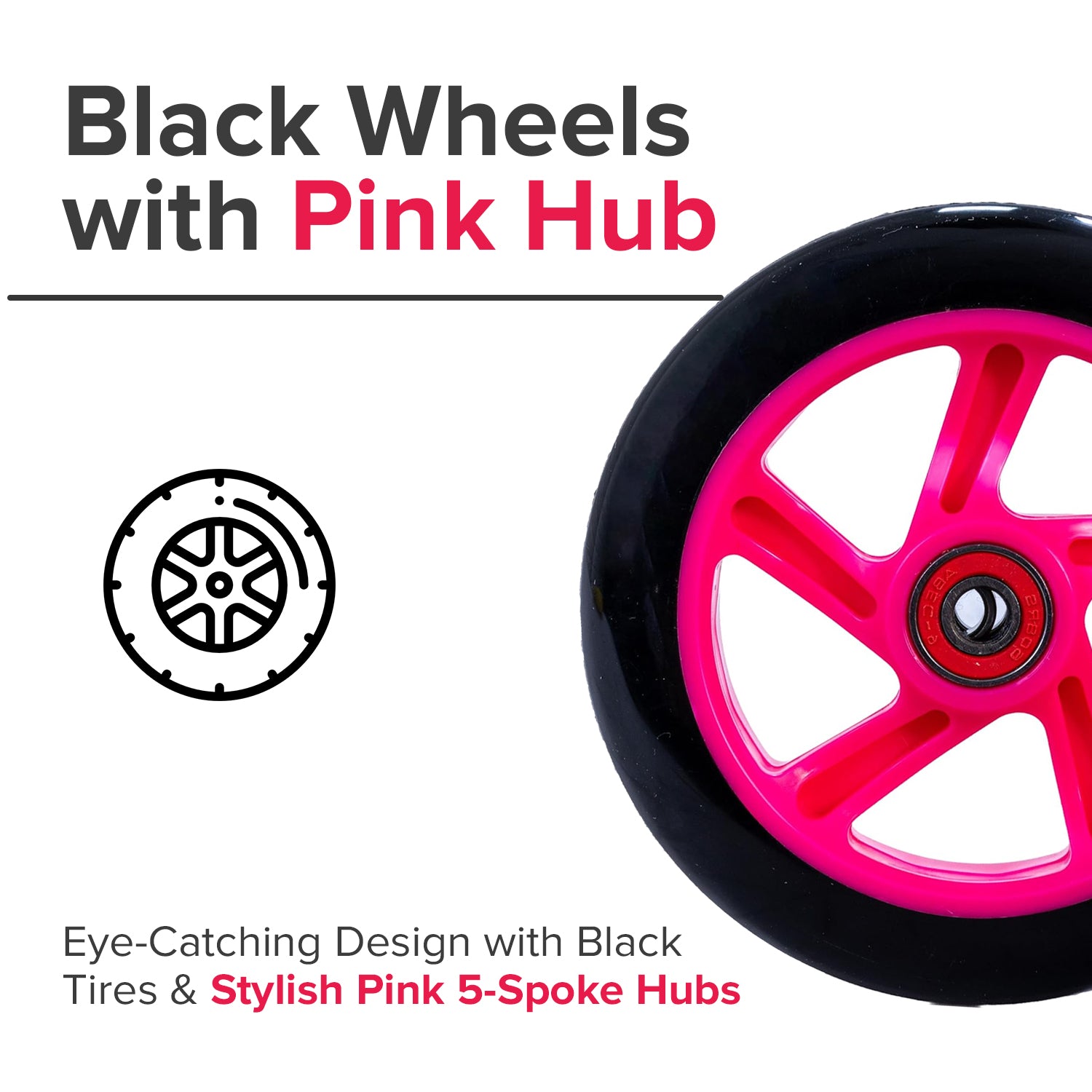 125 mm Kick Scooter Wheel with Black Wheel, Pink Hub, & Bearings (Set of Two)
