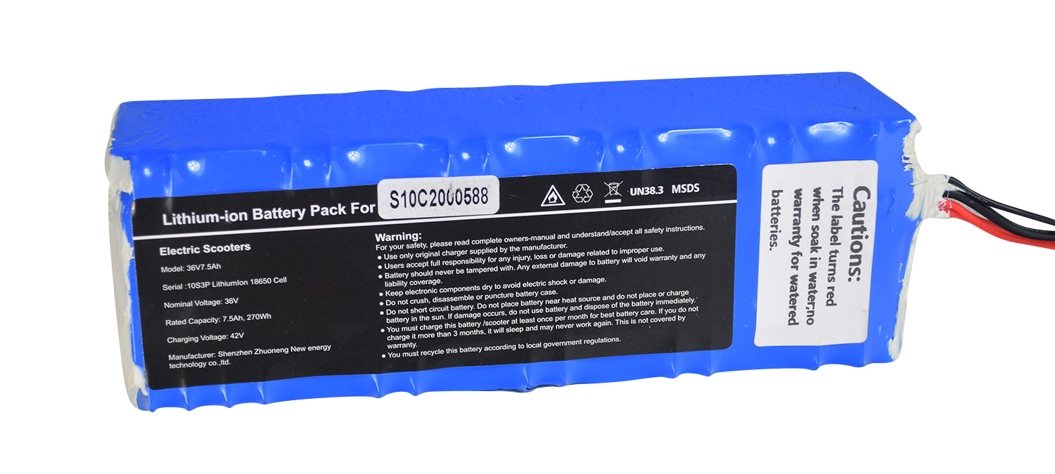 This battery has a 7.0 Ah capacity for a much longer between recharge run-time. These lightweight 36 volt powerhouses will keep you and your S10 zipping along.