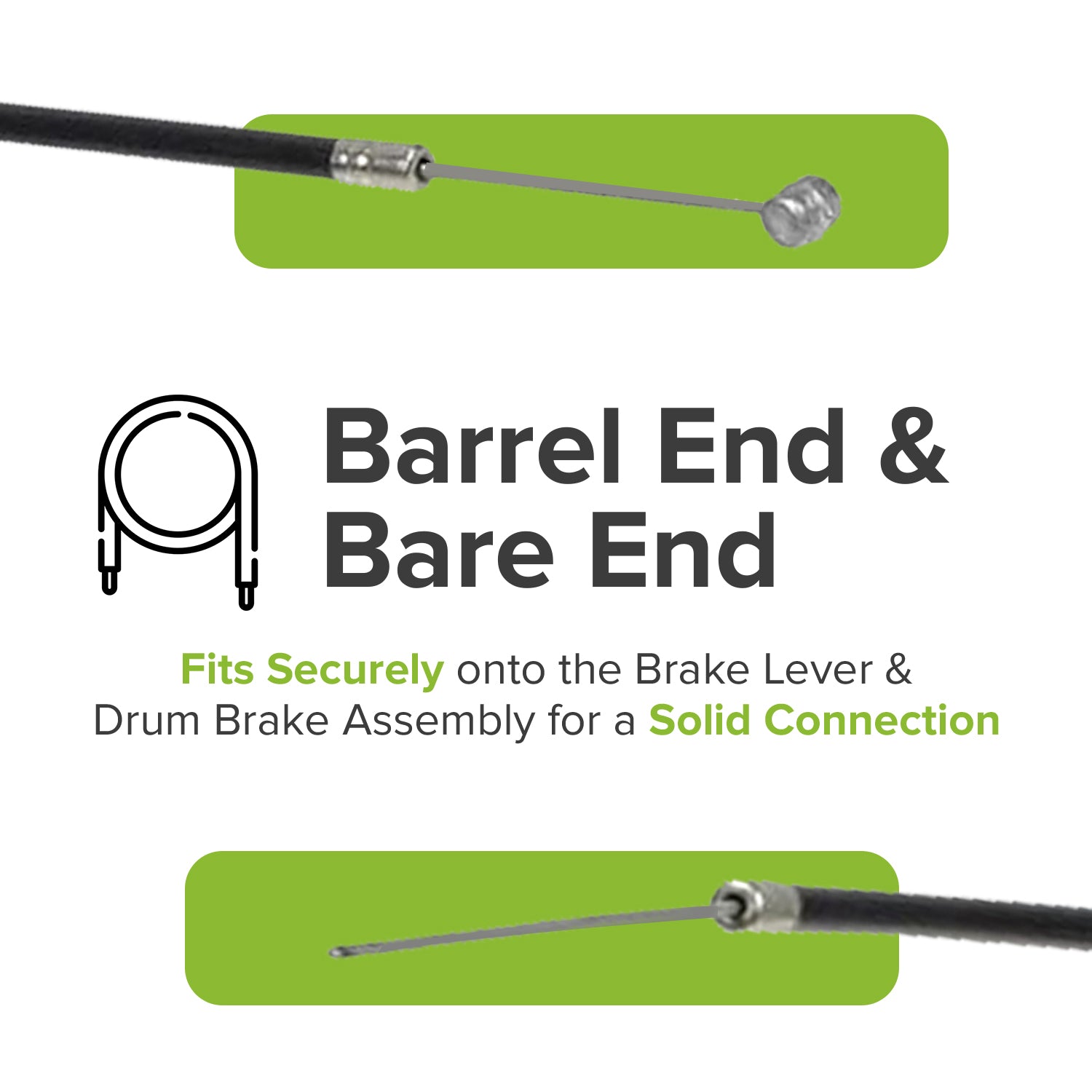 - Barrel end fits the brake lever, bare end to the drum brake assembly