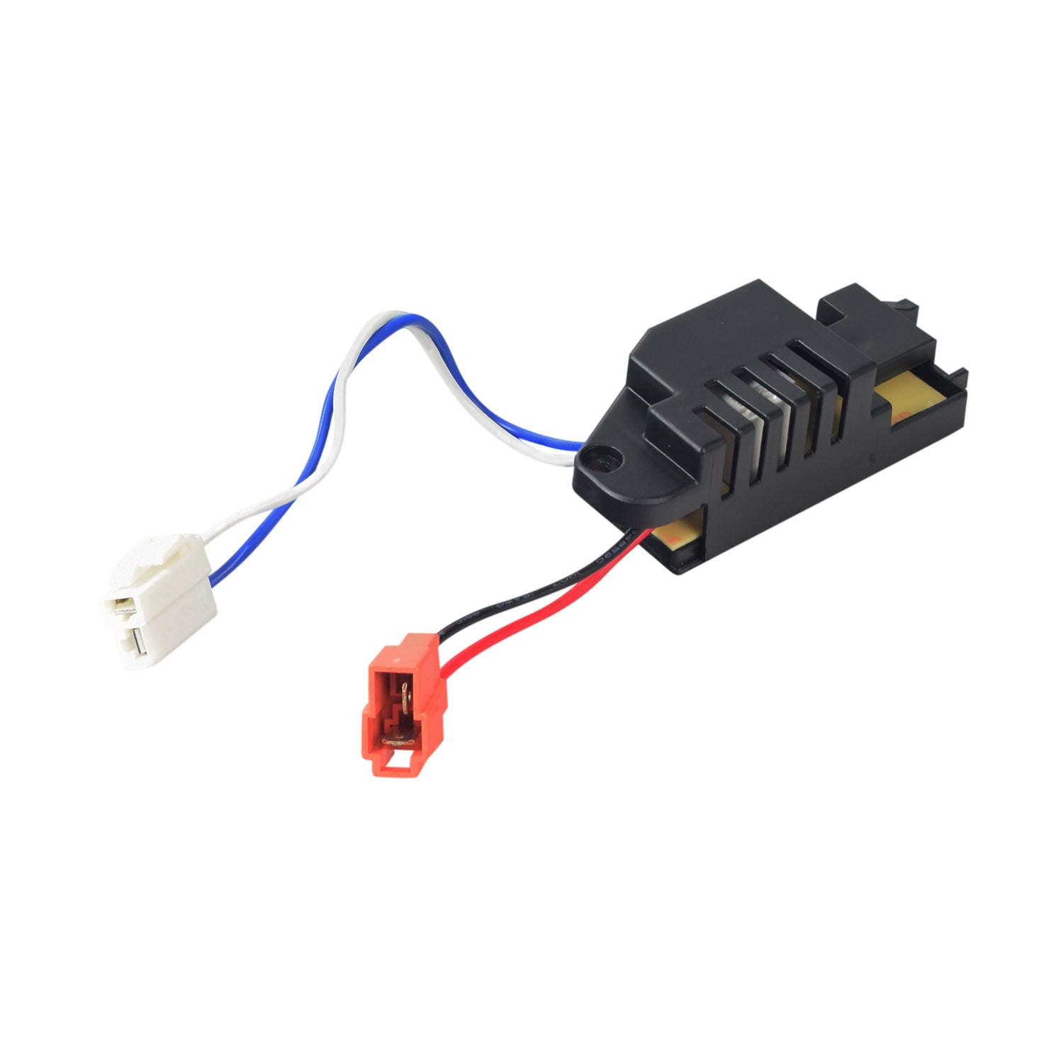 This replacement 12 volt controller for the Rollplay 12 volt Nighthawk uses a black plastic case to encapsulate the printed circuit board inside.