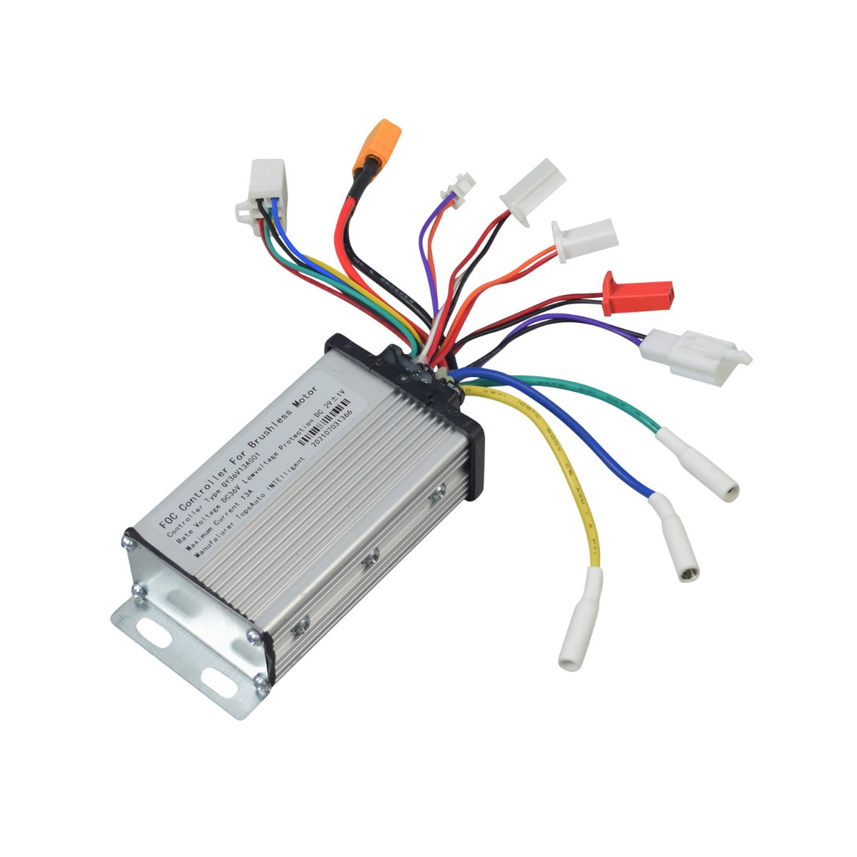 This 36 volt control module features 10 connectors and 21 wires.