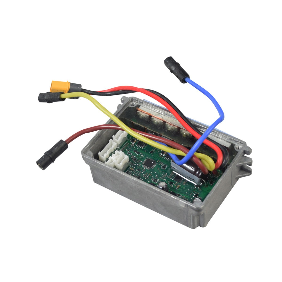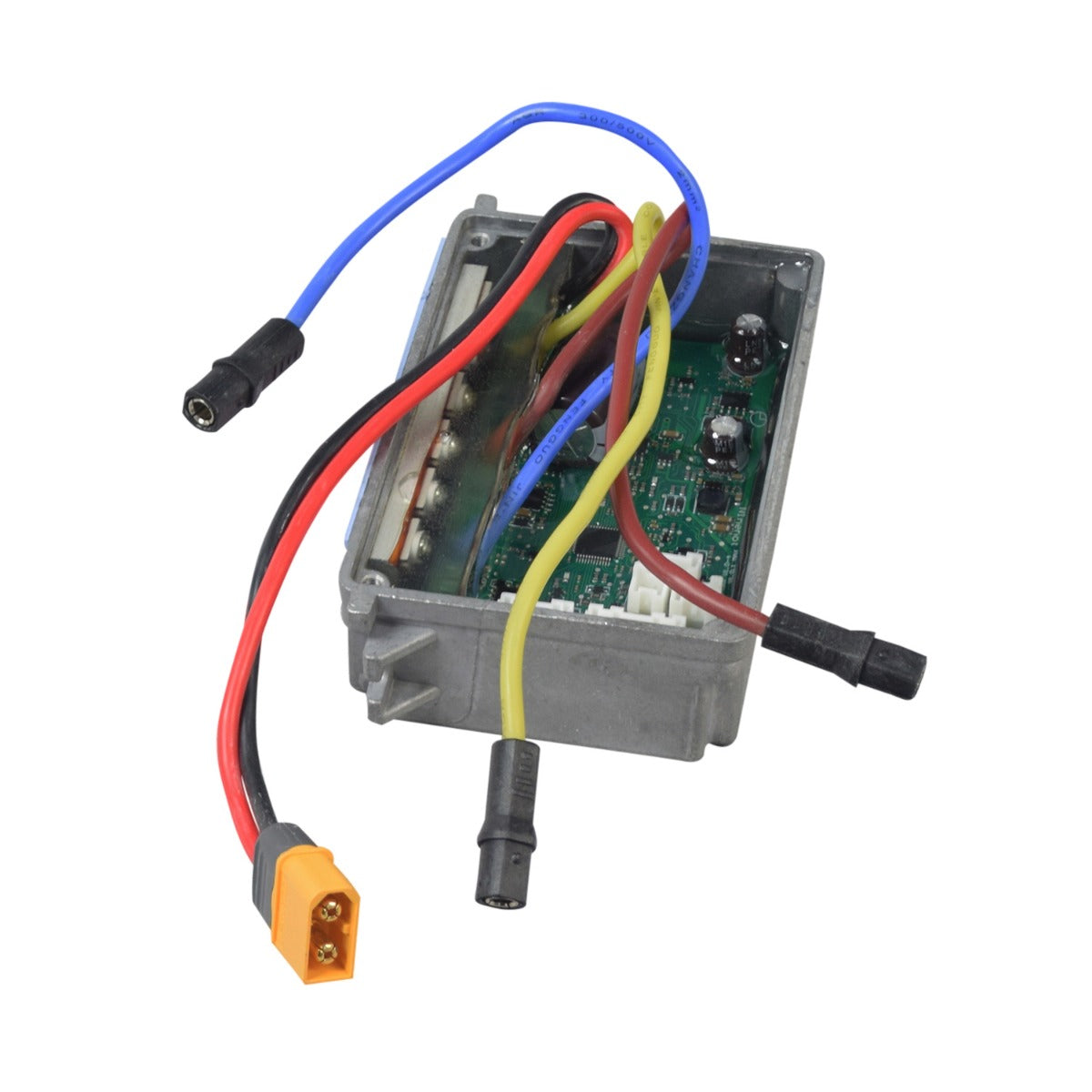 Our Ninebot motherboard included the PCB, the protective metal case, and the five wires with connectors. This motherboard is only compatible with the Ninebot by Segway MAX G30 electric scooter. Although it looks similar to other models such as the Xiaomi M365, the part is not interchangeable with that of any other model.