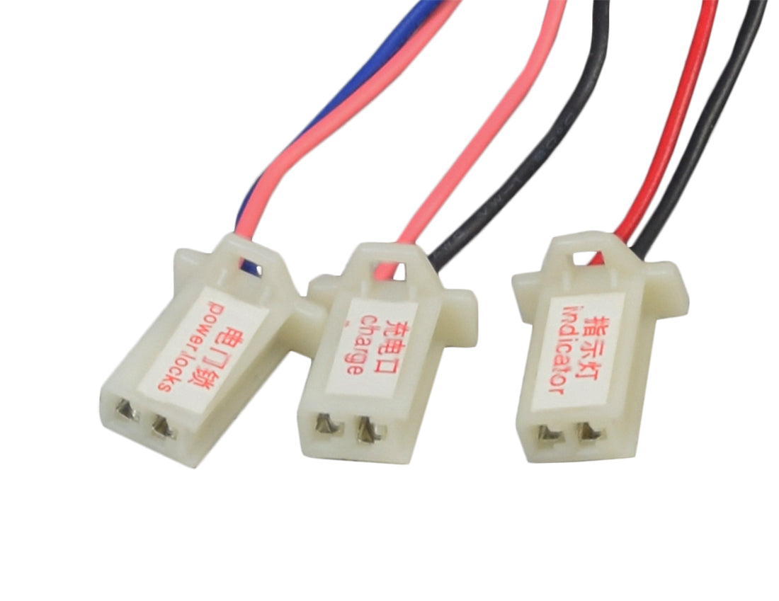 Battery wiring. Same as OEM connector. Connect to your battery's connector. Black to Black, Red to Red.