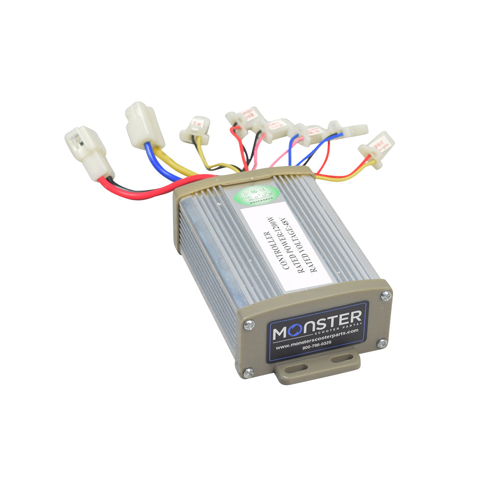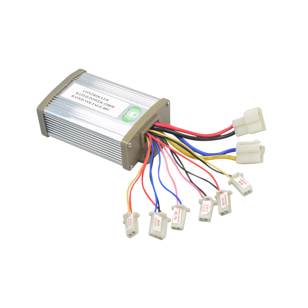 48 Volt 1200 Watt voltage/speed controller for electric scooters, bikes, go karts, and mopeds. Eight connectors: motor, battery, indicator, to put, power locks, charge, brake, and brake signal.