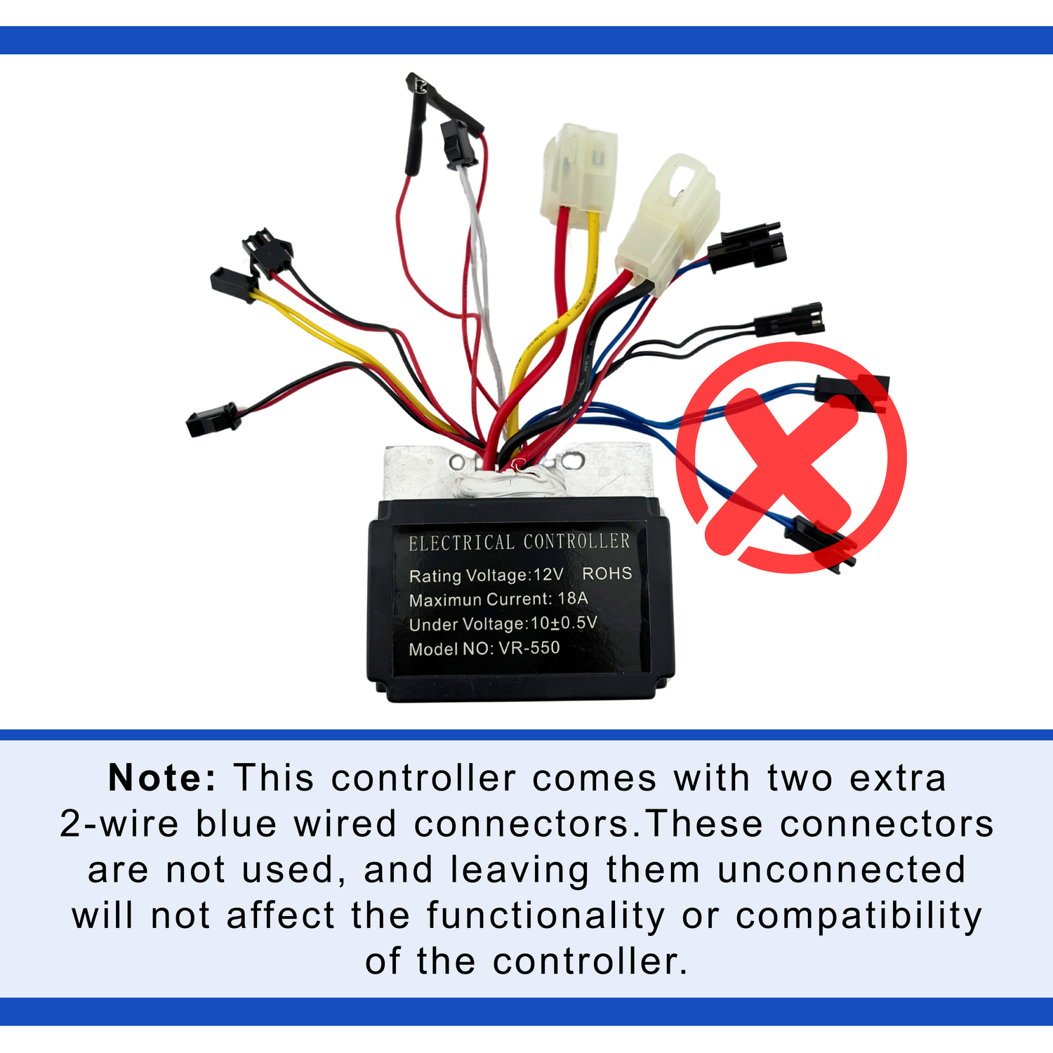 Note: This controller comes with two extra 2-wire blue wired connectors. These connectors are not used, and leaving them unconnected will not affect the functionality or compatibility of the controller.