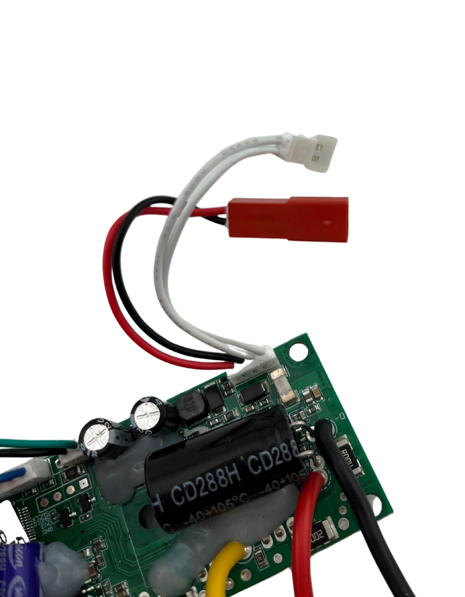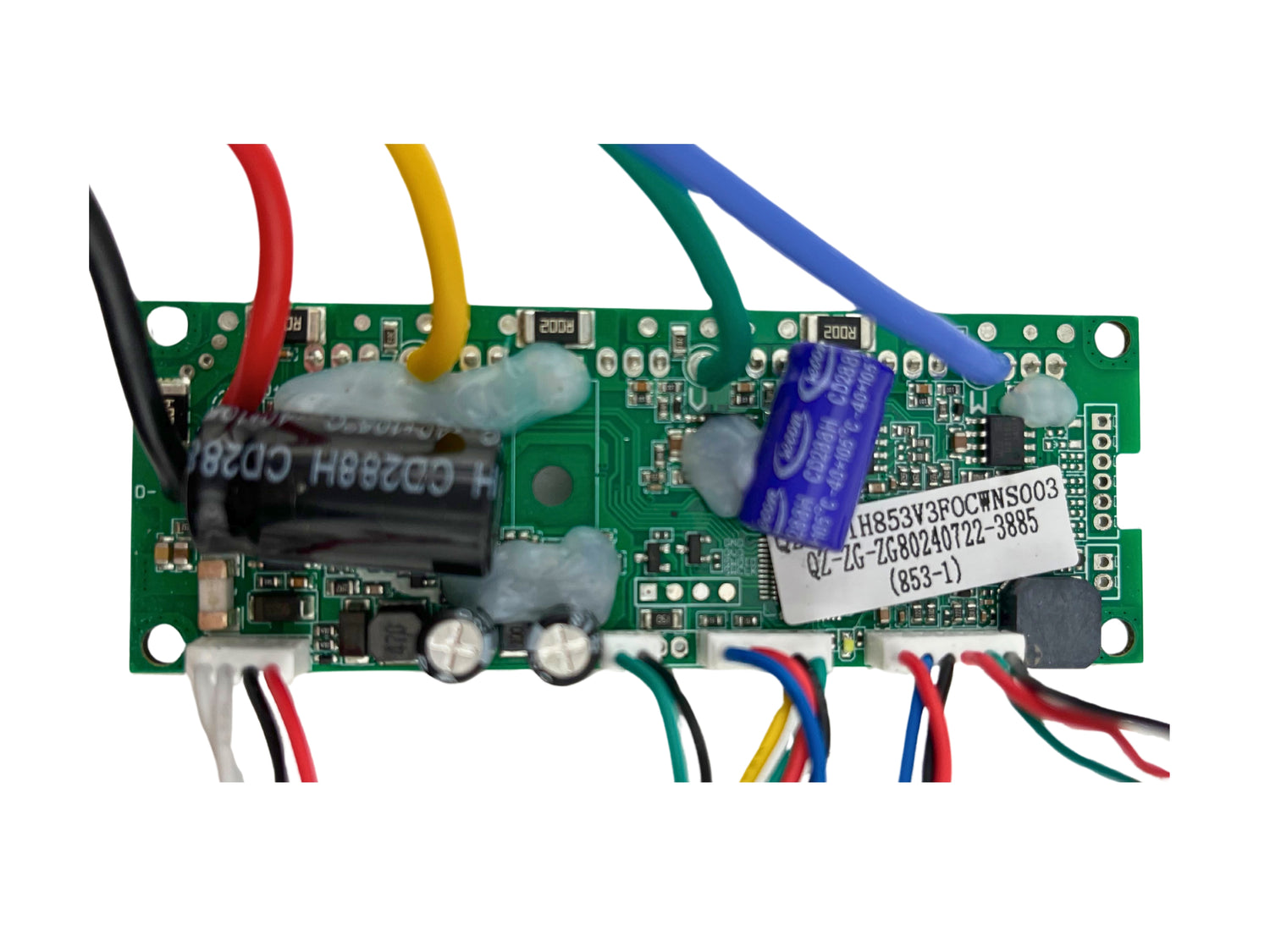 Our GOTRAX motherboard included the PCB along with the various wires and the four connectors that make up the harness.