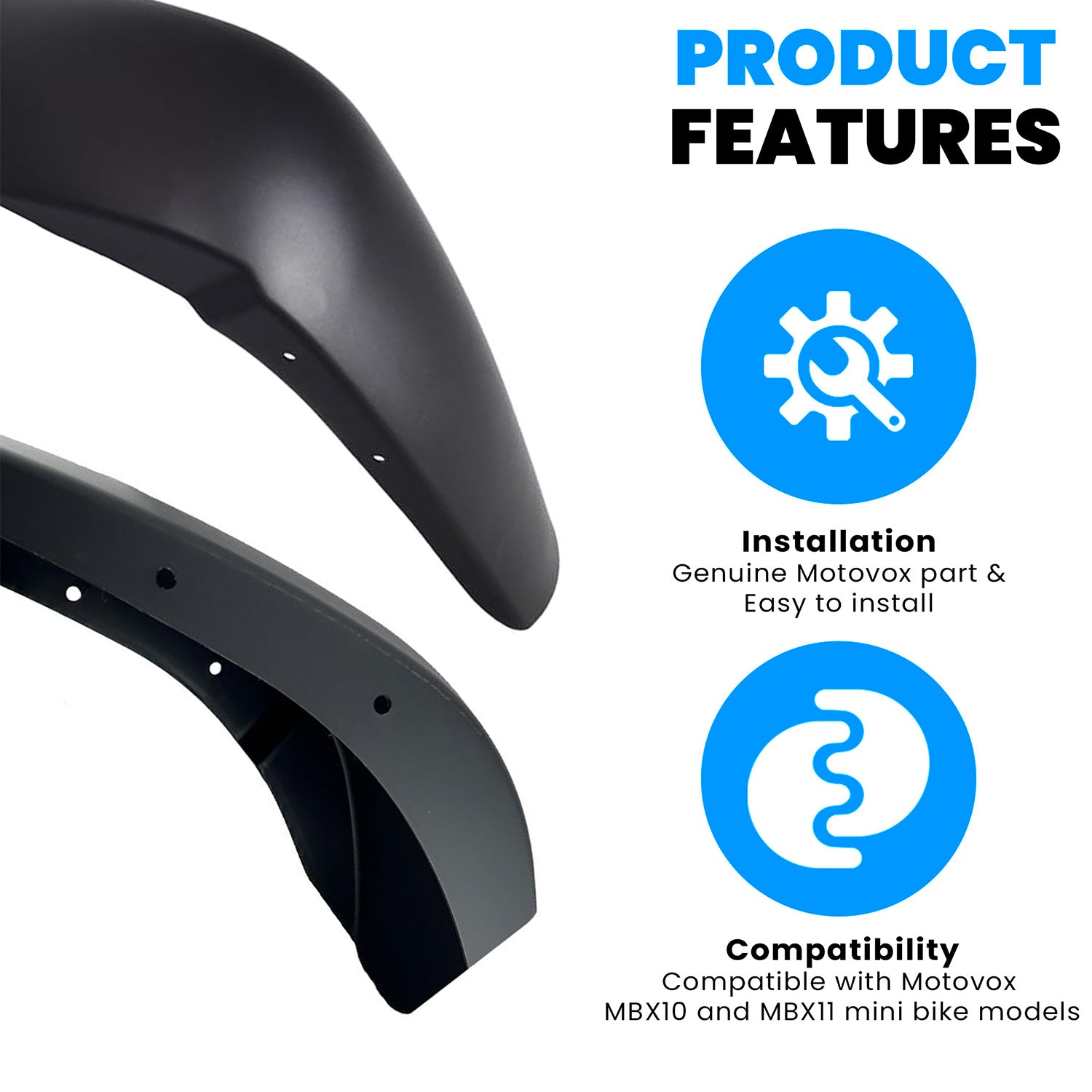 Is it time to replace your worn out rear fender on your Monster Moto / Mega Moto or Motovox mini bike? This black plastic rear fender is compatible with the Monster Moto / Mega Moto Cassic 105cc, Classic 1000w, MM-B80 80cc, and both the Motovox MBX10 and MBX11 mini bike models.
