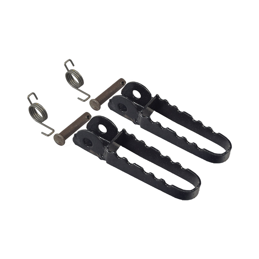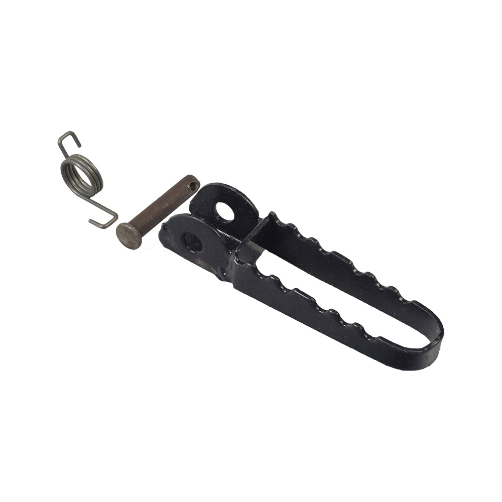 Our flip-up foot peg for dirt bikes, mini bikes, and scooters is a quality aftermarket part that may be used as a left-side footrest or a right-side footrest. Each of these steel pegs come with the spring and the clevis pin.