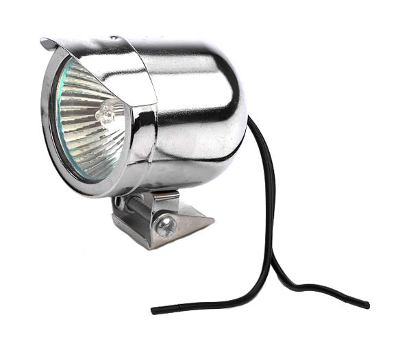 12 Volt chrome headlight assembly. 2" Diameter. Fits gas scooters and mini choppers