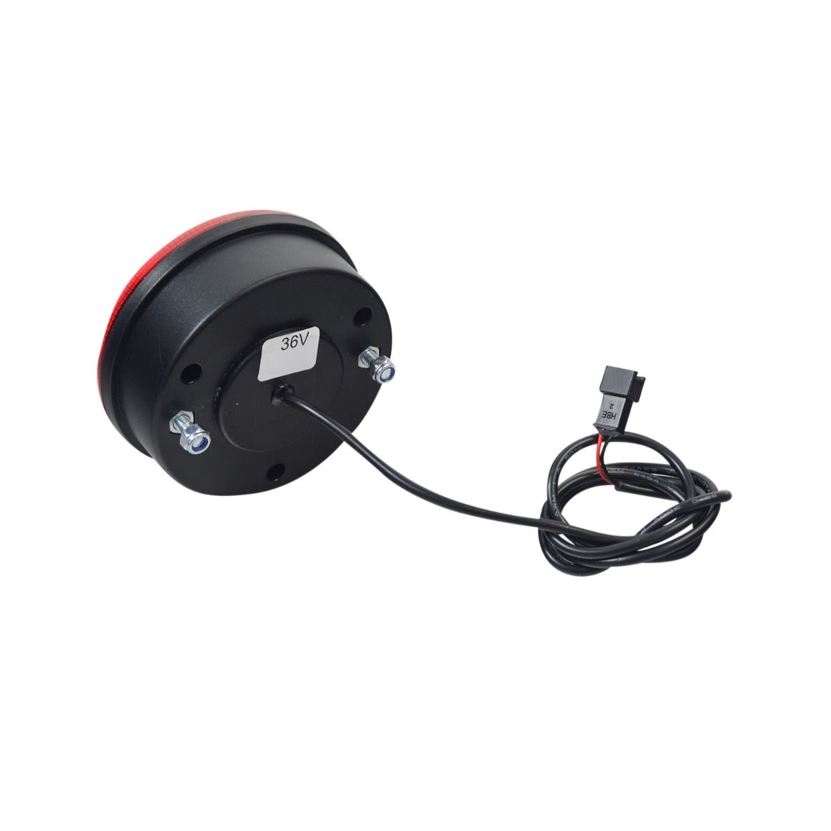 The taillight for the Razor Rambler 16 electric mini bike is a 3-1/2" diameter disc of red illumination. This taillight is an essential component if riding in low light conditions.