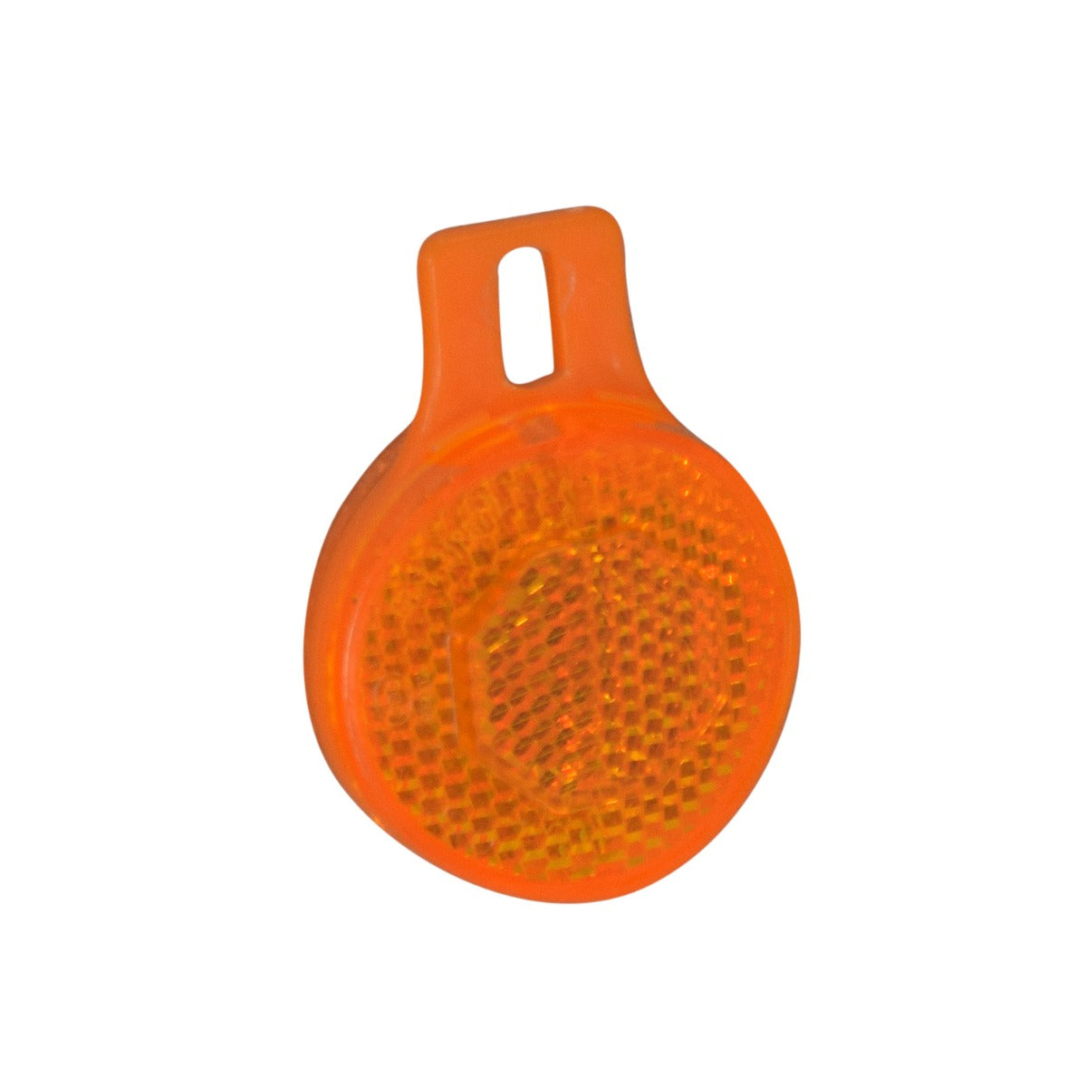 This wheel spoke reflector is mounted to the inside of the rear wheel of the GOTRAX EBE1 Folding Super Sport Bike. It is made of a strong and reflective orange plastic. The bright color allows you to be seen by others very easily in any environment.