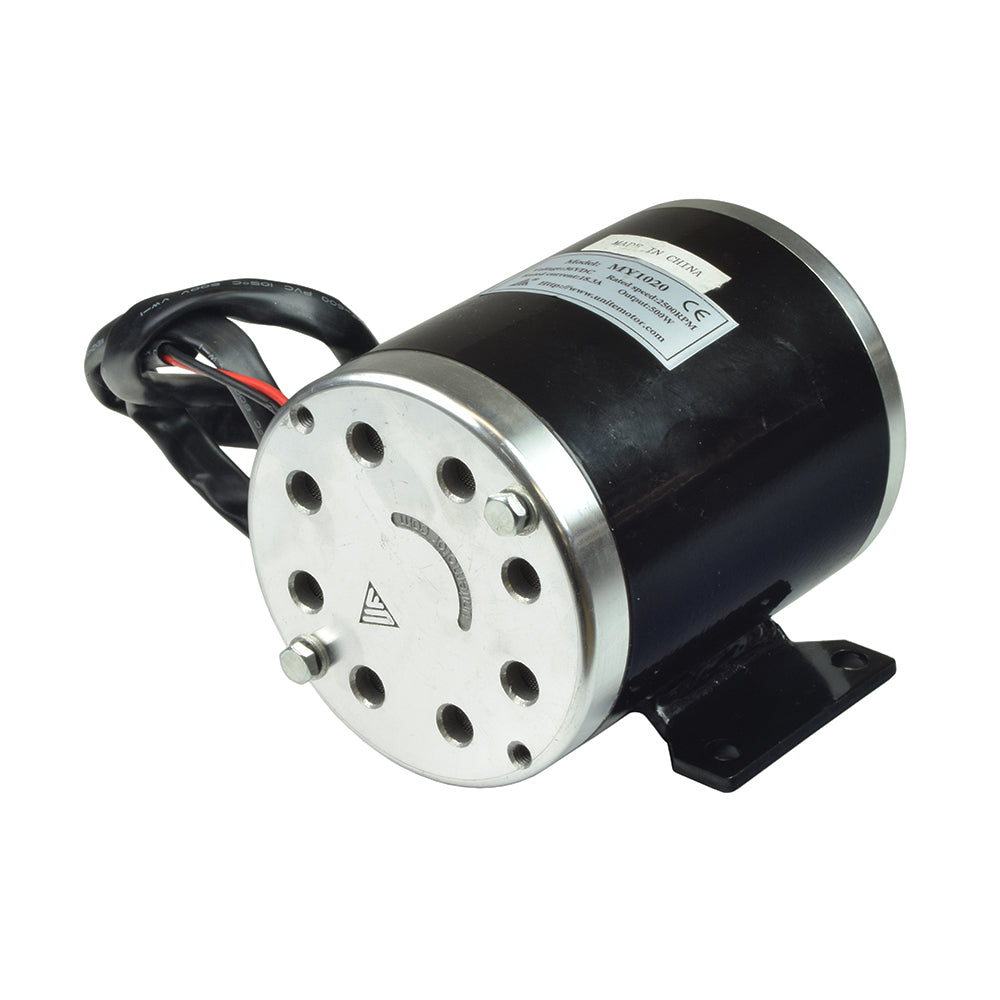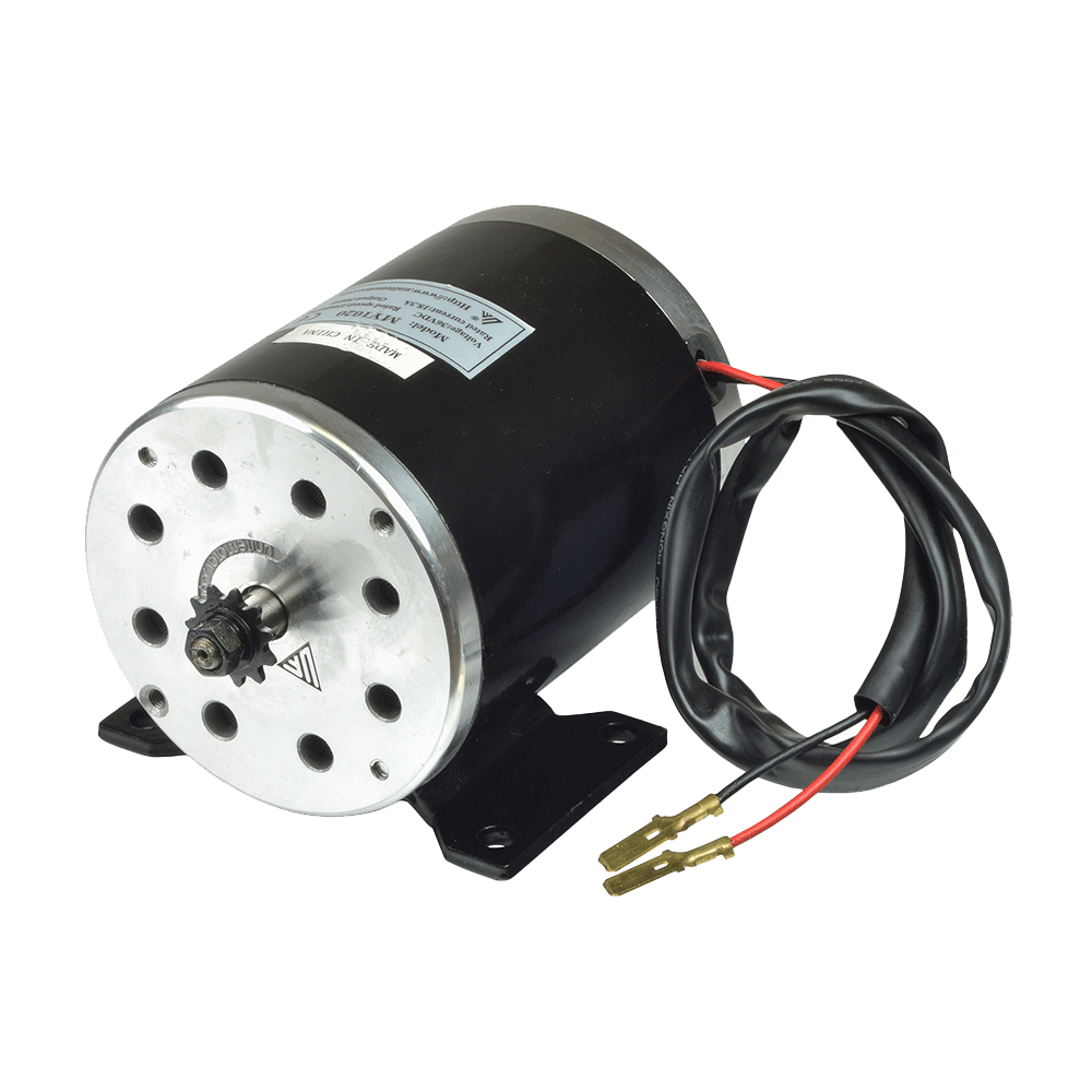 The 36 volt 500 watt MY1020 electric motor with mounting bracket and #25 chain sprocket works on a number of different models of Minimoto recreational scooters. Please see our compatibility list for more information.