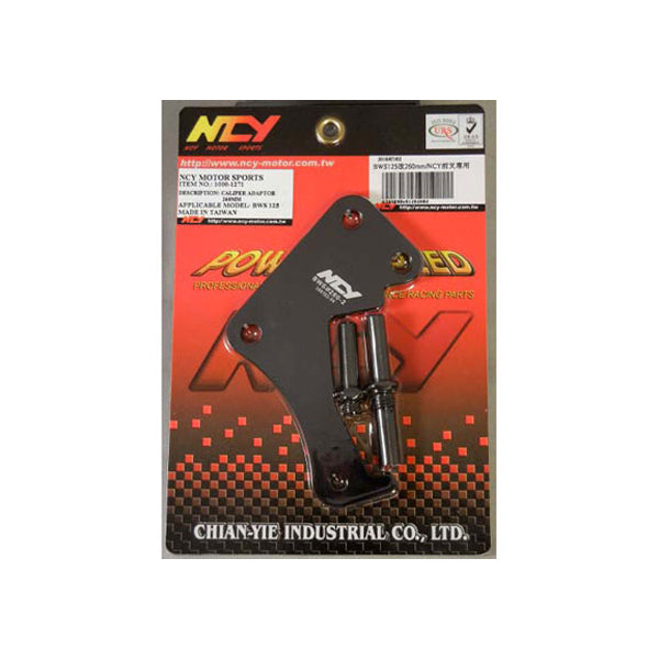 This is the high quality NCY caliper adapter for the 260 mm brake discs on the Yamaha Zuma 125 scooter. This brake caliper adapter to be used with our 260 mm NCY brake rotor.