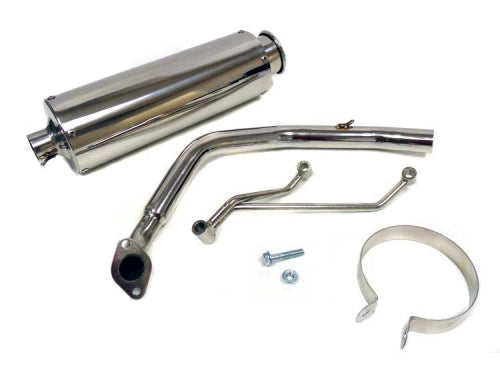 The round stainless steel exhaust kit for 125cc and 150cc scooters is a perfect upgrade for your machine that will make your scooter look even better. The durable and rust resistant qualities of genuine stainless steel is why we say that "steel is real."