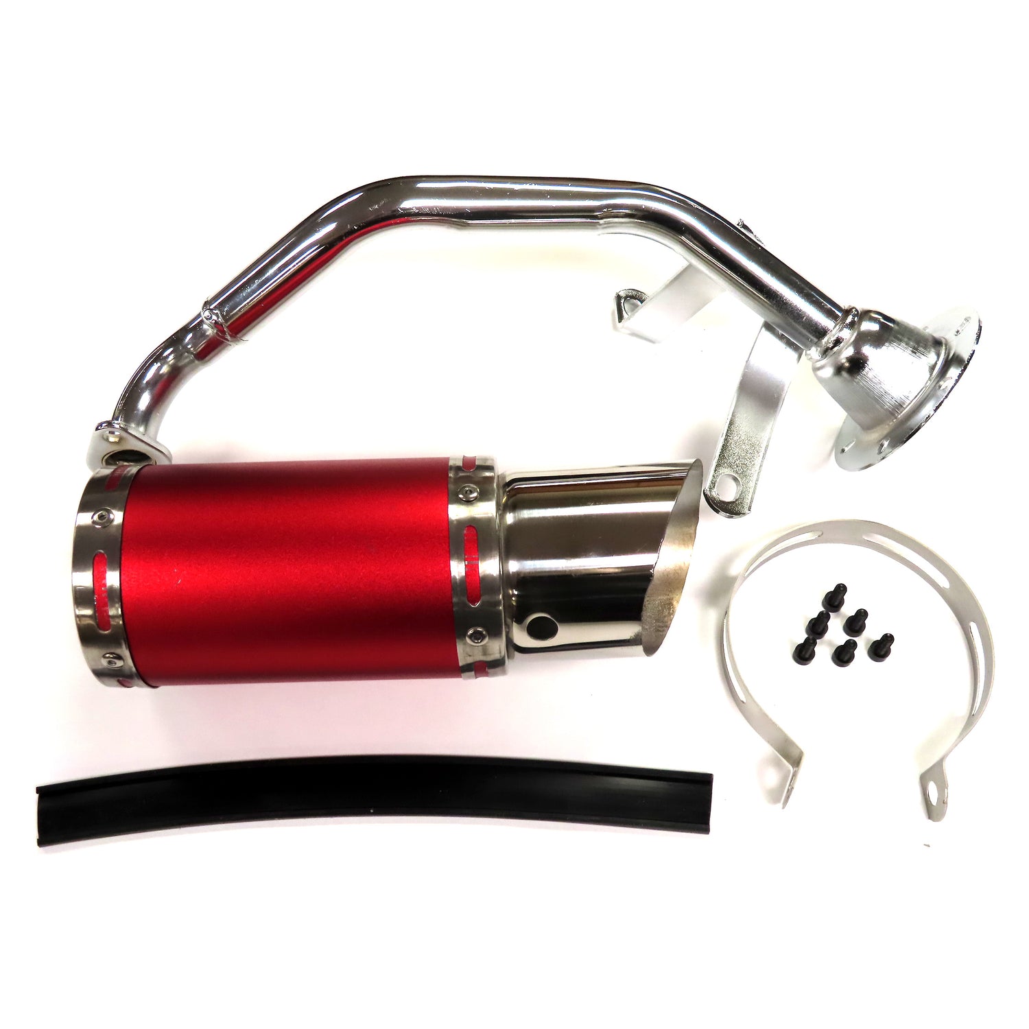 - Note: This red Short Performance Exhaust System for GY6 150cc Scooters & Go-Karts is missing the gasket,