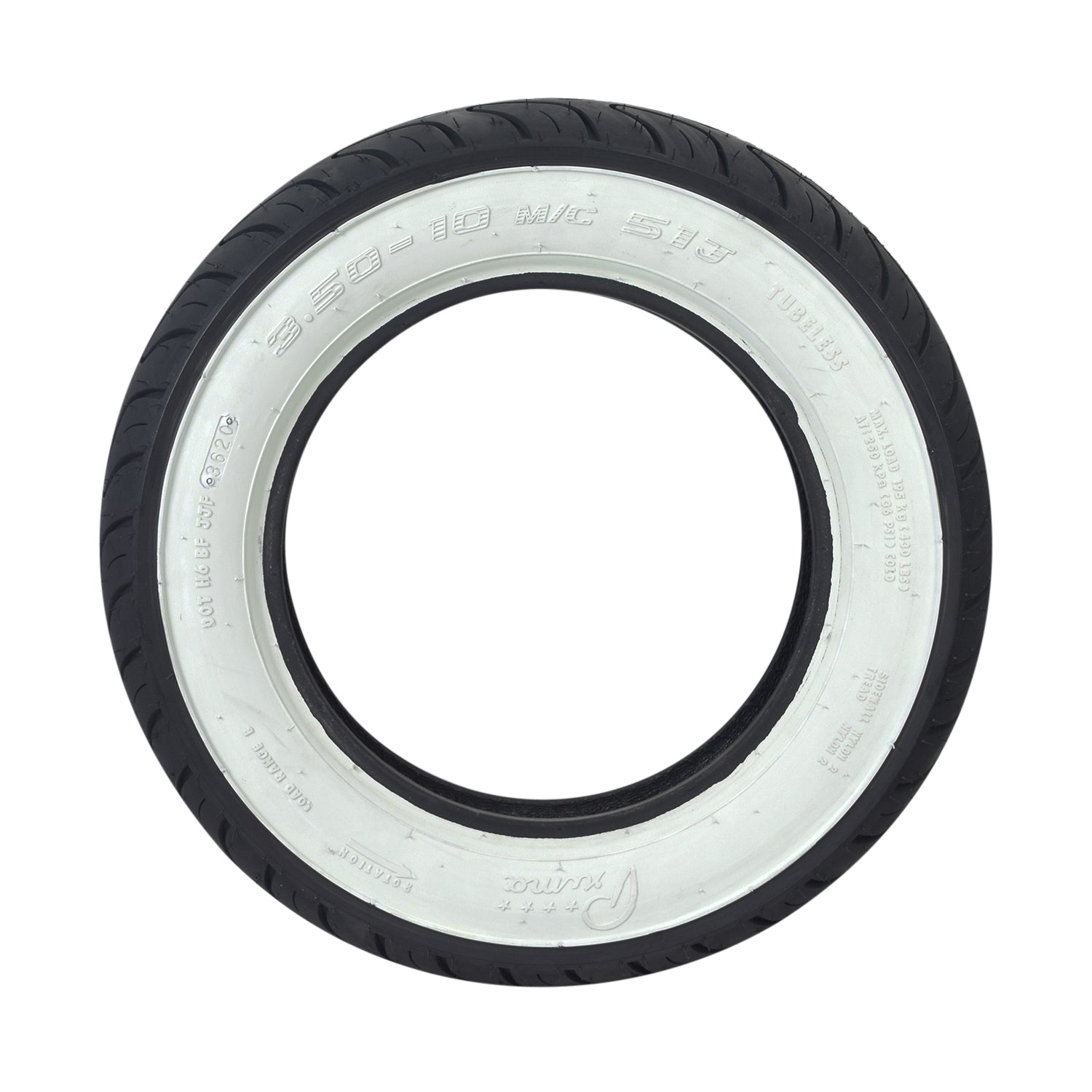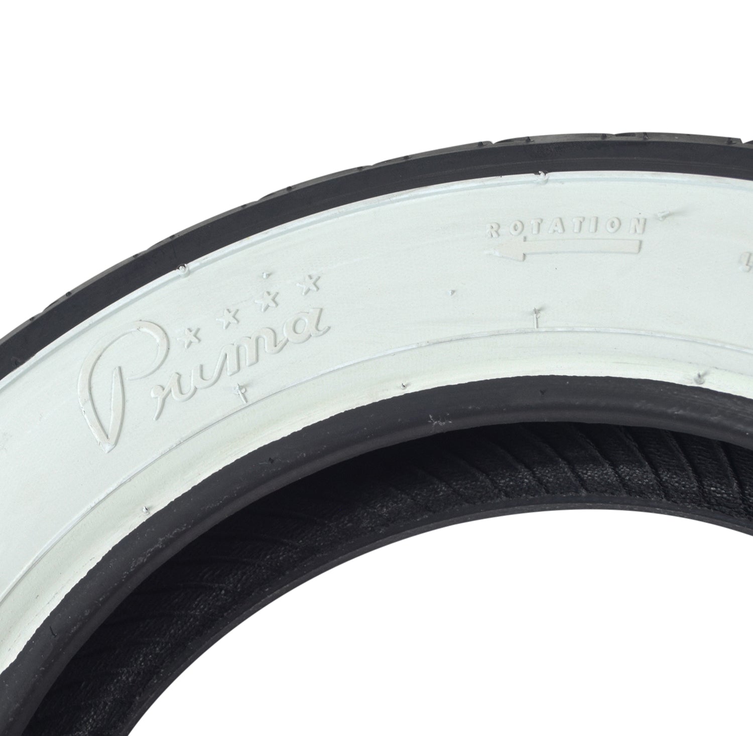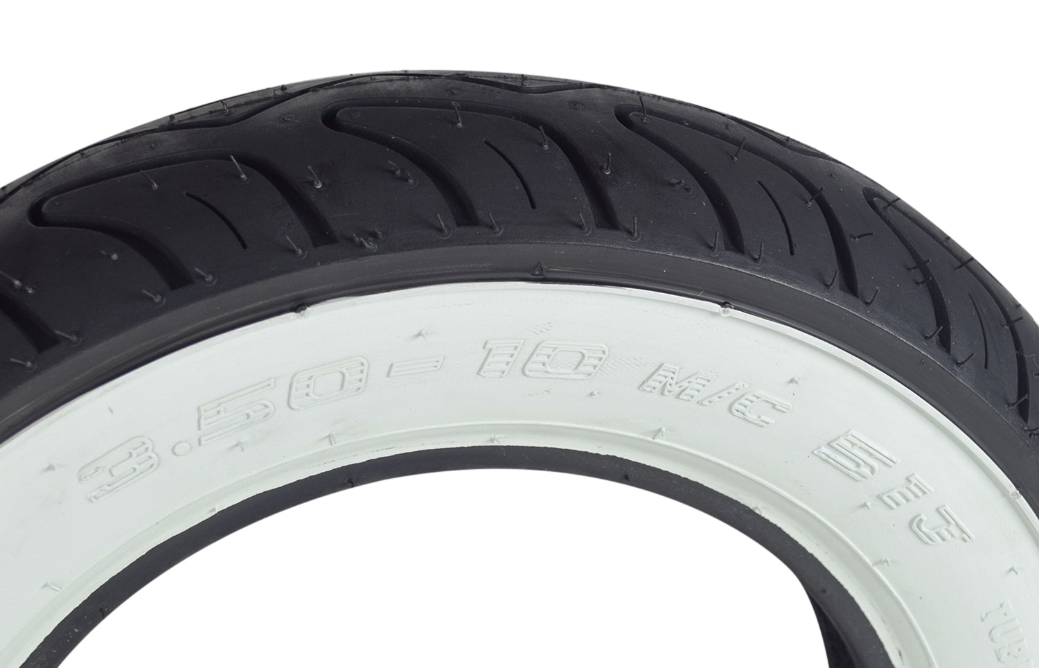 The excellent Prima 3.50-10 whitewall scooter tire combines the good looks of classic whitewall style with uncompromised safety and high quality. Priced right, these fine tubeless scooter tires are perfect for vintage Vespas like the Sprint, Vespa GS, Vespa P200, Vespa SS, Vespa GL, and Vespa Rally.