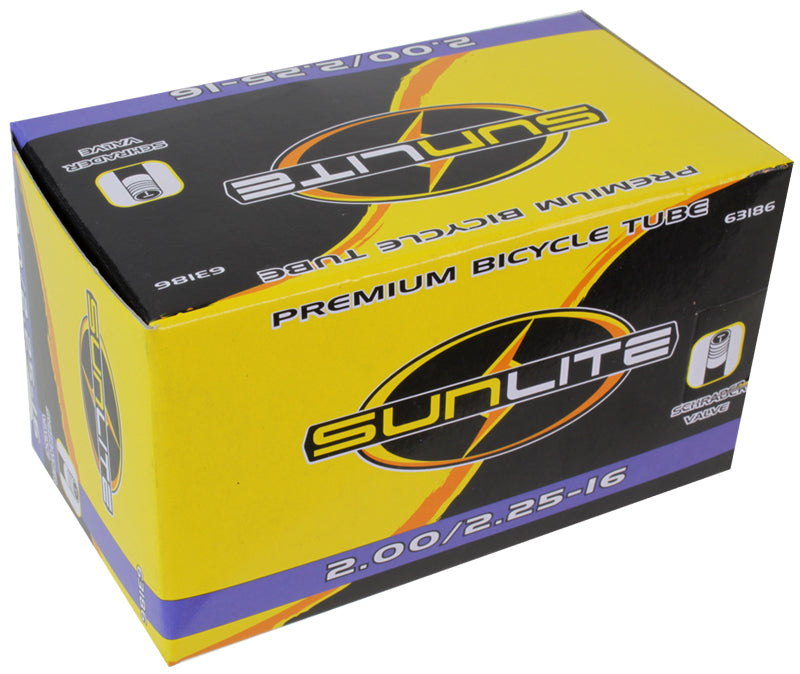 Replace your old 16"x200/225 bike inner tube with this great 16"x200/225 Bicycle Inner Tube with Straight Valve from Sunlite. Inner tubes are the most commonly replaced bike parts, and these excellent Sunlite inner tubes will get you rolling along. Let Monster Scooter Parts be your source for the latest bicycle inner tubes from Sunlite with this 16"x200/225 Bicycle Inner Tube with Straight Valve.