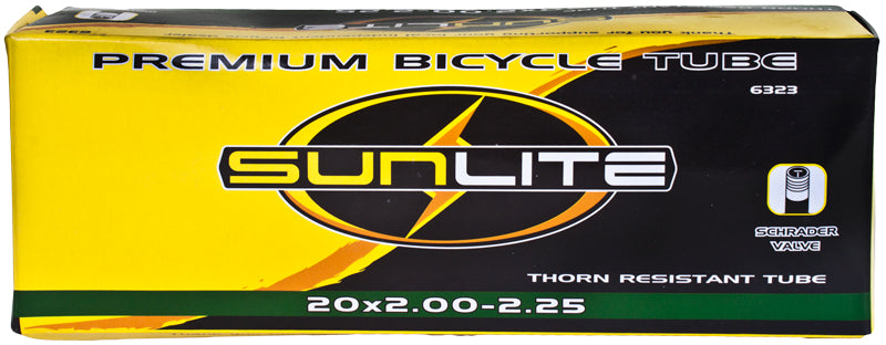 Replace your old 20"x2.00-2.25" bike inner tube with this great 20"x2.00-2.25" heavy duty thorn resistant bicycle inner tube with a straight Schrader valve from Sunlite. Inner tubes are the most commonly replaced bike parts, and these excellent Sunlite inner tubes will get you rolling along. Let Monster Scooter Parts be your source for the latest bicycle inner tubes from Sunlite with this 20"x2.00-2.25" heavy duty thorn resistant bicycle inner tube with a straight Schrader valve.