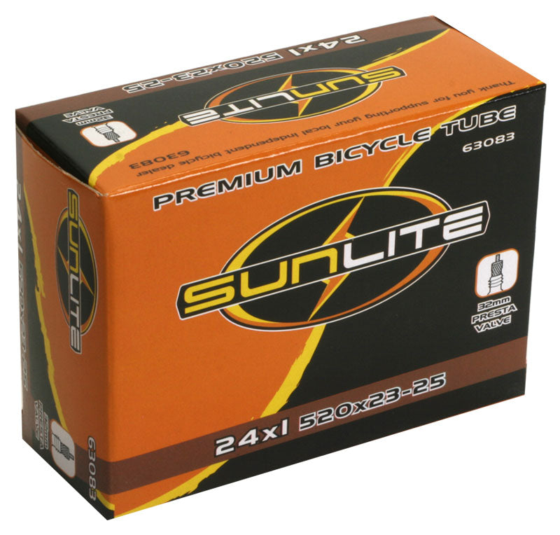 Replace your old 24"x1" bike inner tube with this great 24"x1" Bicycle Inner Tube with 32mm Presta Valve from Sunlite. Inner tubes are the most commonly replaced bike parts, and these excellent Sunlite inner tubes will get you rolling along. Let Monster Scooter Parts be your source for the latest bicycle inner tubes from Sunlite with this 24"x1" Bicycle Inner Tube with 32mm Presta Valve.