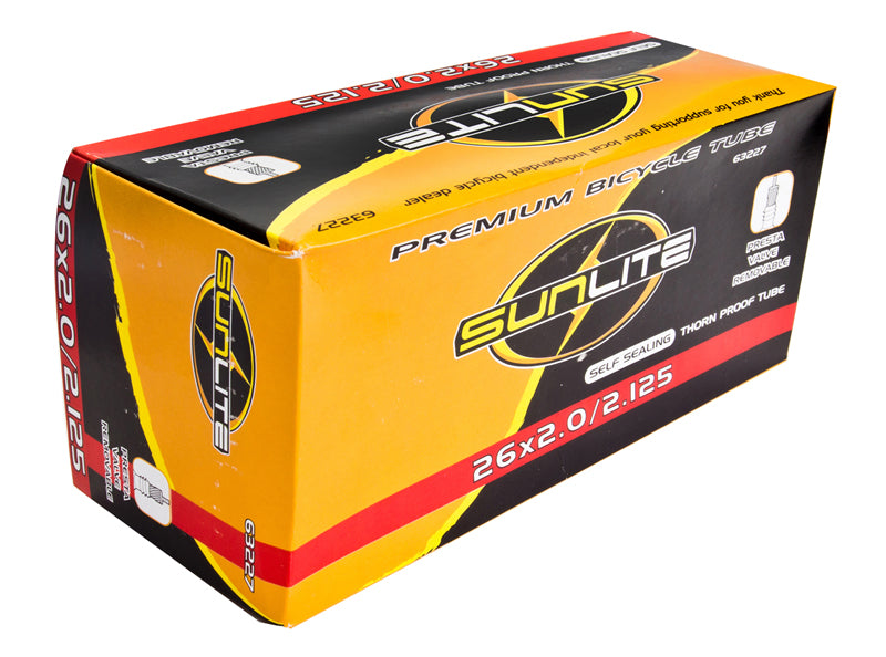 Replace your old 26"x2.00/2.125" bike inner tube with this great 26"x2.00/2.125" Bicycle Inner Tube with 32mm Presta Valve from Sunlite. Inner tubes are the most commonly replaced bike parts, and these excellent Sunlite inner tubes will get you rolling along. Let Monster Scooter Parts be your source for the latest bicycle inner tubes from Sunlite with this 26"x2.00/2.125" Bicycle Inner Tube with 32mm Presta Valve.