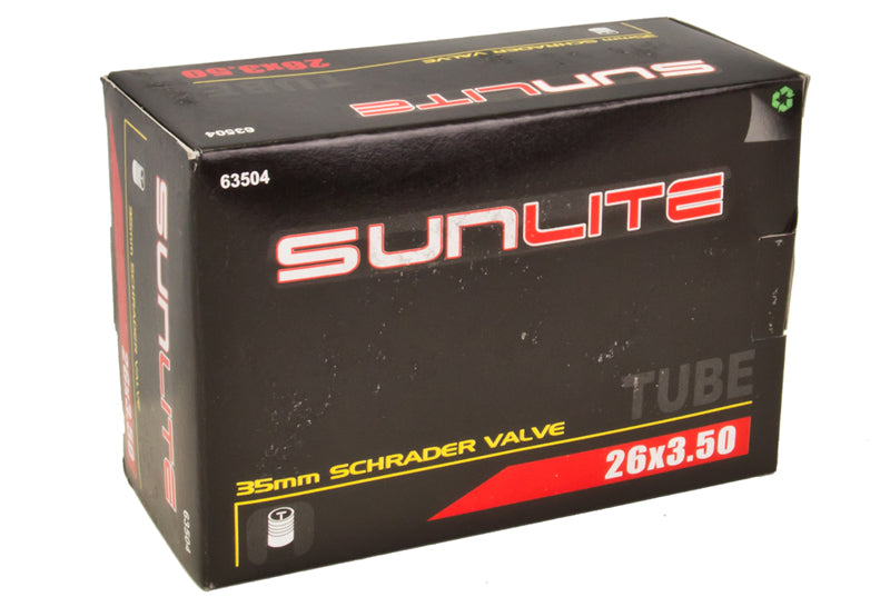 Replace your old 26"x3.5" bike inner tube with this great 26"x3.5" Bicycle Inner Tube with Straight Valve from Sunlite. Inner tubes are the most commonly replaced bike parts, and these excellent Sunlite inner tubes will get you rolling along. Let Monster Scooter Parts be your source for the latest bicycle inner tubes from Sunlite with this 26"x3.5" Bicycle Inner Tube with Straight Valve.