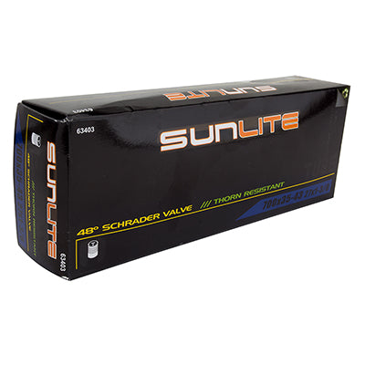 Replace your old 700x35-43 bike inner tube with this great 700x35-43 heavy duty thorn resistant bicycle inner tube with a straight 48 mm Schrader valve from Sunlite. Inner tubes are the most commonly replaced bike parts, and these excellent Sunlite inner tubes will get you rolling along. Let Monster Scooter Parts be your source for the latest bicycle inner tubes from Sunlite with this 700x35-43 heavy duty thorn resistant bicycle inner tube with a straight Schrader valve.