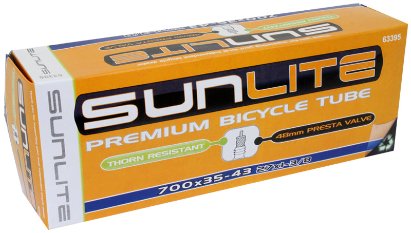 Replace your old 700x35-43 bike inner tube with this great 700x35-43 Heavy Duty Thorn Resistant Bicycle Inner Tube with 48mm Presta Valve from Sunlite. Inner tubes are the most commonly replaced bike parts, and these excellent Sunlite inner tubes will get you rolling along. Let Monster Scooter Parts be your source for the latest bicycle inner tubes from Sunlite with this 700x35-43 Heavy Duty Thorn Resistant Bicycle Inner Tube with 48mm Presta Valve.