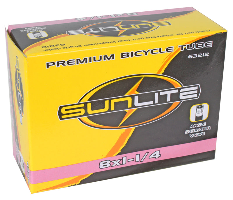 Replace your old 8"x1-1/4" bike inner tube with this great 8"x1-1/4" Bicycle Inner Tube with Angled Valve from Sunlite. Inner tubes are the most commonly replaced bike parts, and these excellent Sunlite inner tubes will get you rolling along. Let Monster Scooter Parts be your source for the latest bicycle inner tubes from Sunlite with this 8"x1-1/4" Bicycle Inner Tube with Angled Valve.