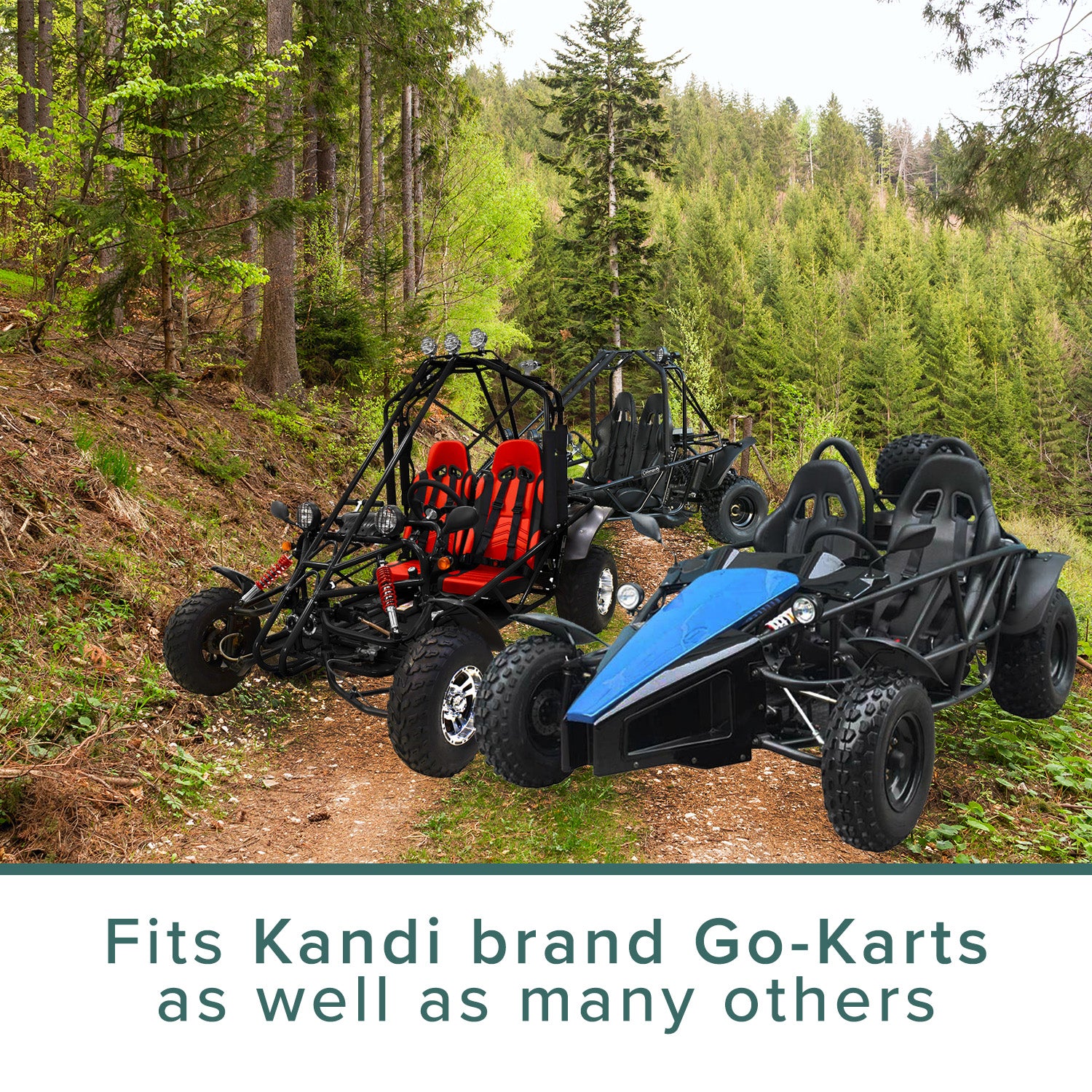 Our set of two rear fenders for 150cc - 250cc go-karts features a pair of black plastic panels to help keep the mud and the muck from being thrown by the rear tires up onto the 'kart. This pair of rear fenders are made for those Chinese-made go-karts and dune buggies powered by the ubiquitous 150cc to 250cc GY6 engines. Among the many brands that can benefit from a pair of these fenders are models by Kandi, TaoTao, and others.