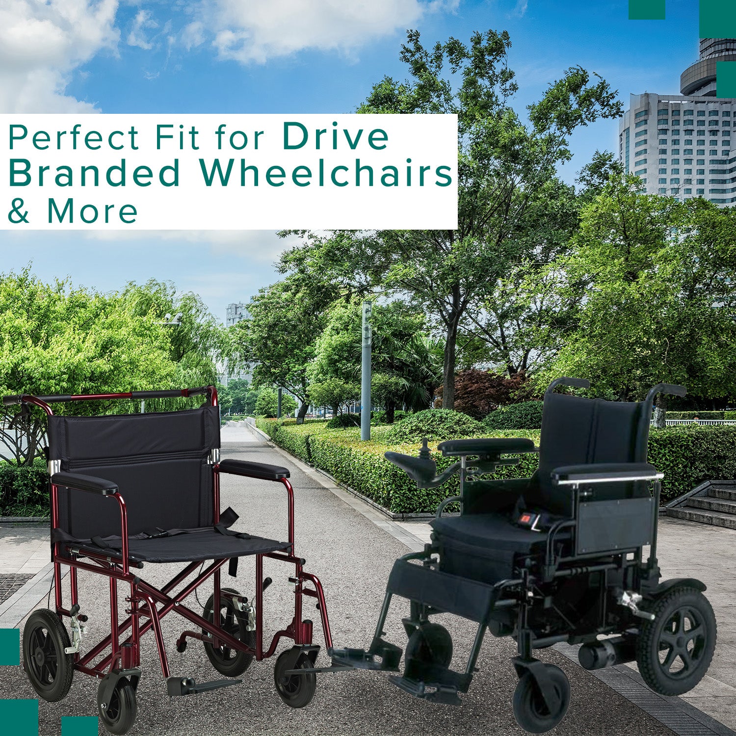 Our set of two 14" padded nylon armrests for wheelchairs can help you beat the high cost of mobility supplies. These full-length armrest swill fit most wheelchairs and is available in black only.