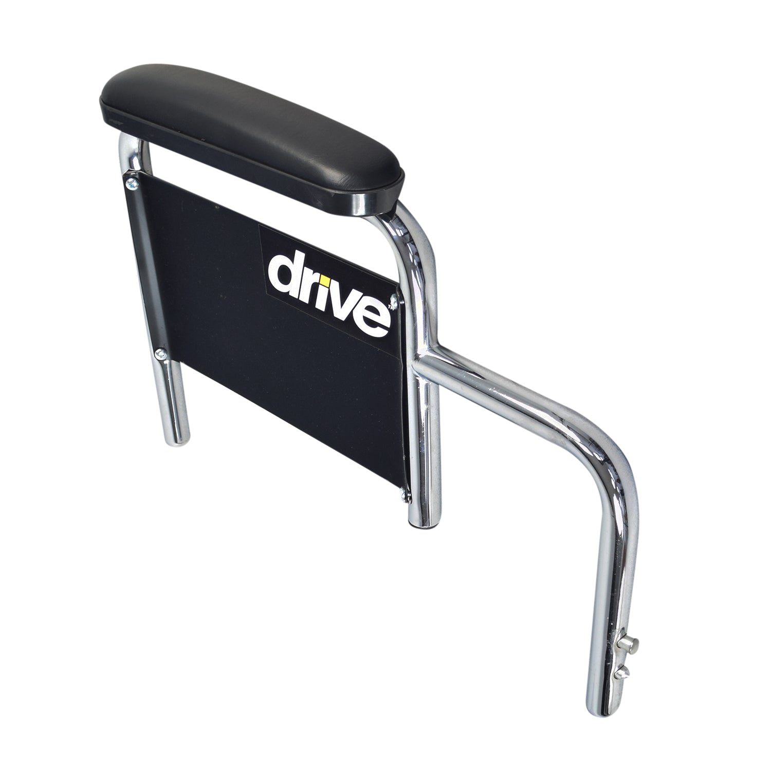 If you need a desk length armrest assembly for the Drive Medical Bariatric Sentra EC Heavy-Duty Extra Extra Wide wheelchair, then this is the one that you want. The armrest assembly features a chromed frame, and the textured vinyl pads are easy to clean. In addition, these compete armrest assemblies also have black side guards (also known as clothing guards).