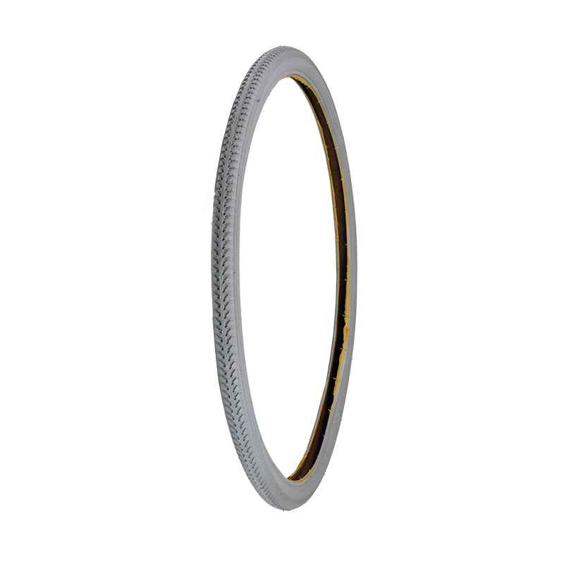 This 22x1-3/8 pneumatic tire with C63 street tread is used on Everest & Jennings wheelchair models and many others. It is made of non-marking gray rubber for use indoors and outside. The inner tube is sold separately.