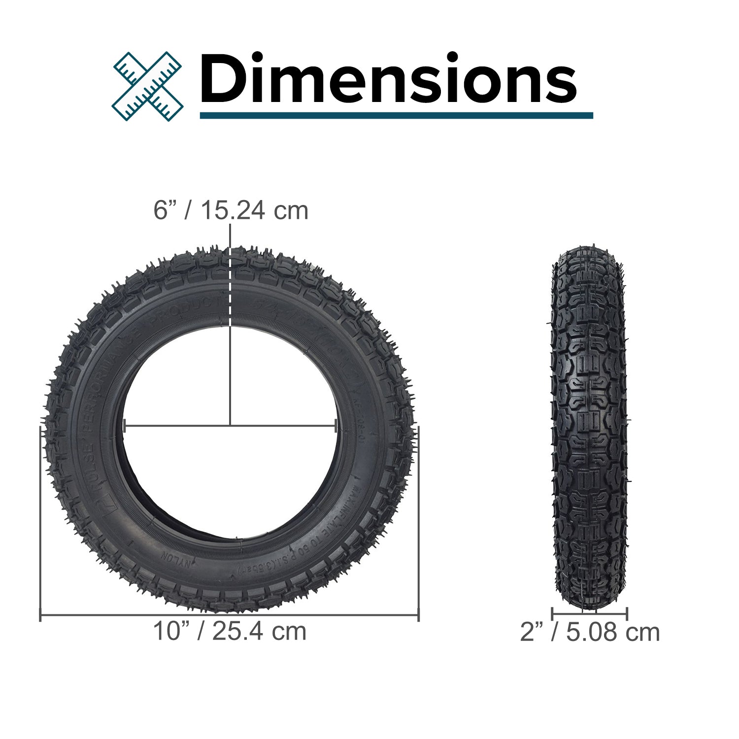 As a pneumatic tire, this model requires an inner tube, and we offer an optional 10"x2" (54-152) Dirt Bike & Scooter Inner Tube with an Angled Valve Stem. This tire and optional inner tube go together like popcorn and melted butter.